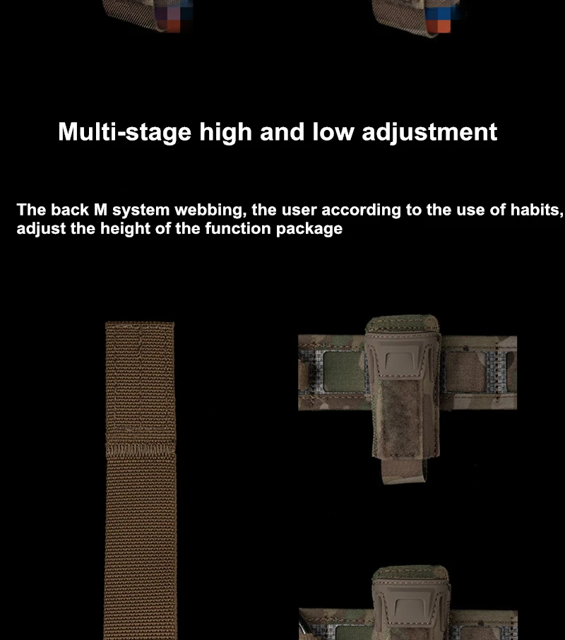 3. Posición ajustable: la correa del sistema M en la parte posterior puede ajustar la altura de la bolsa del cargador según sea necesario.