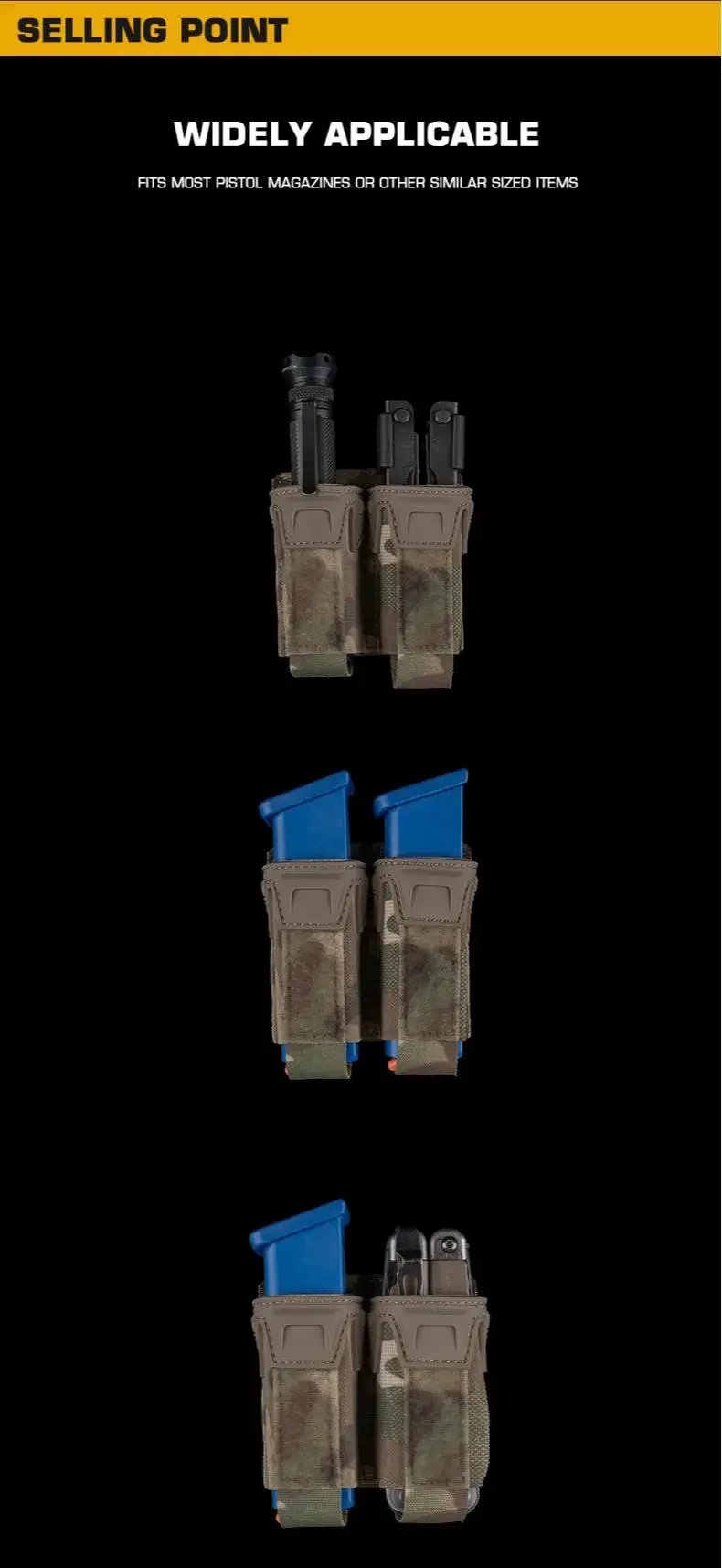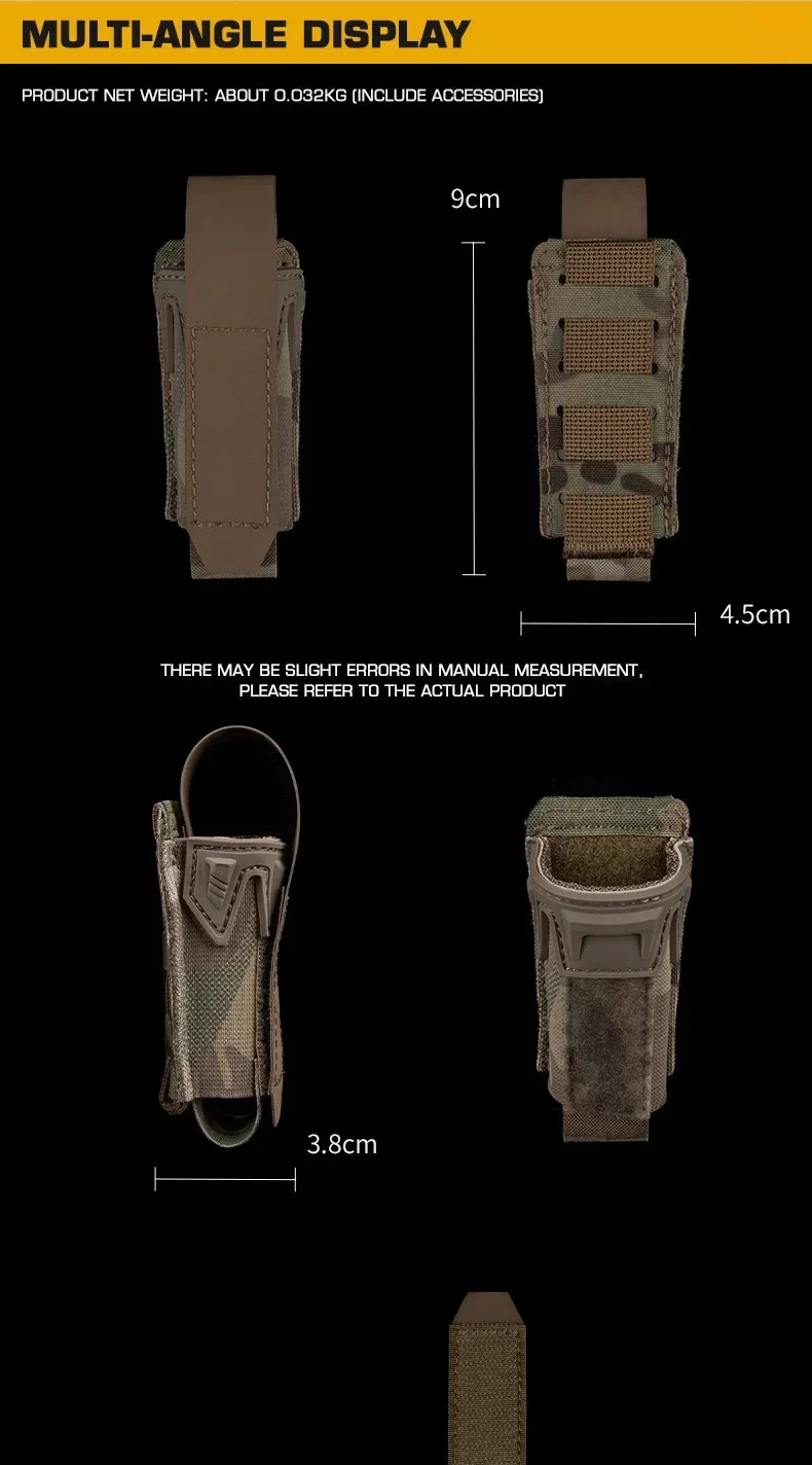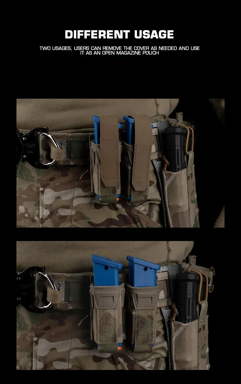 Bolsa magnética simple/doble, correa de combate de 9 mm, cuchillo con bolsa magnética, linterna, estuche para pistola, equipo, MOLLE compatible con caza y tiro
