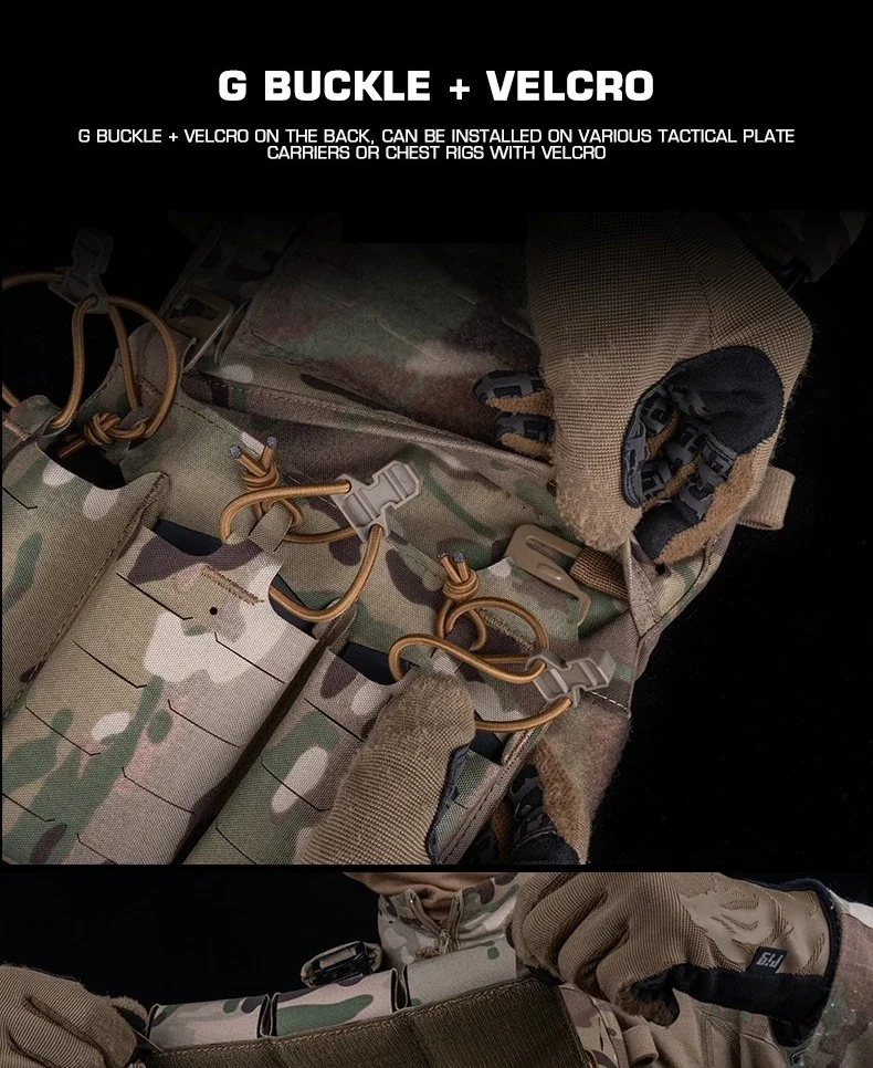 Bolsa magnética Triple 5,56 V5 PC con hebilla en G integrada, cuña Kydex insertada en el chaleco de caza, portador de placa táctica