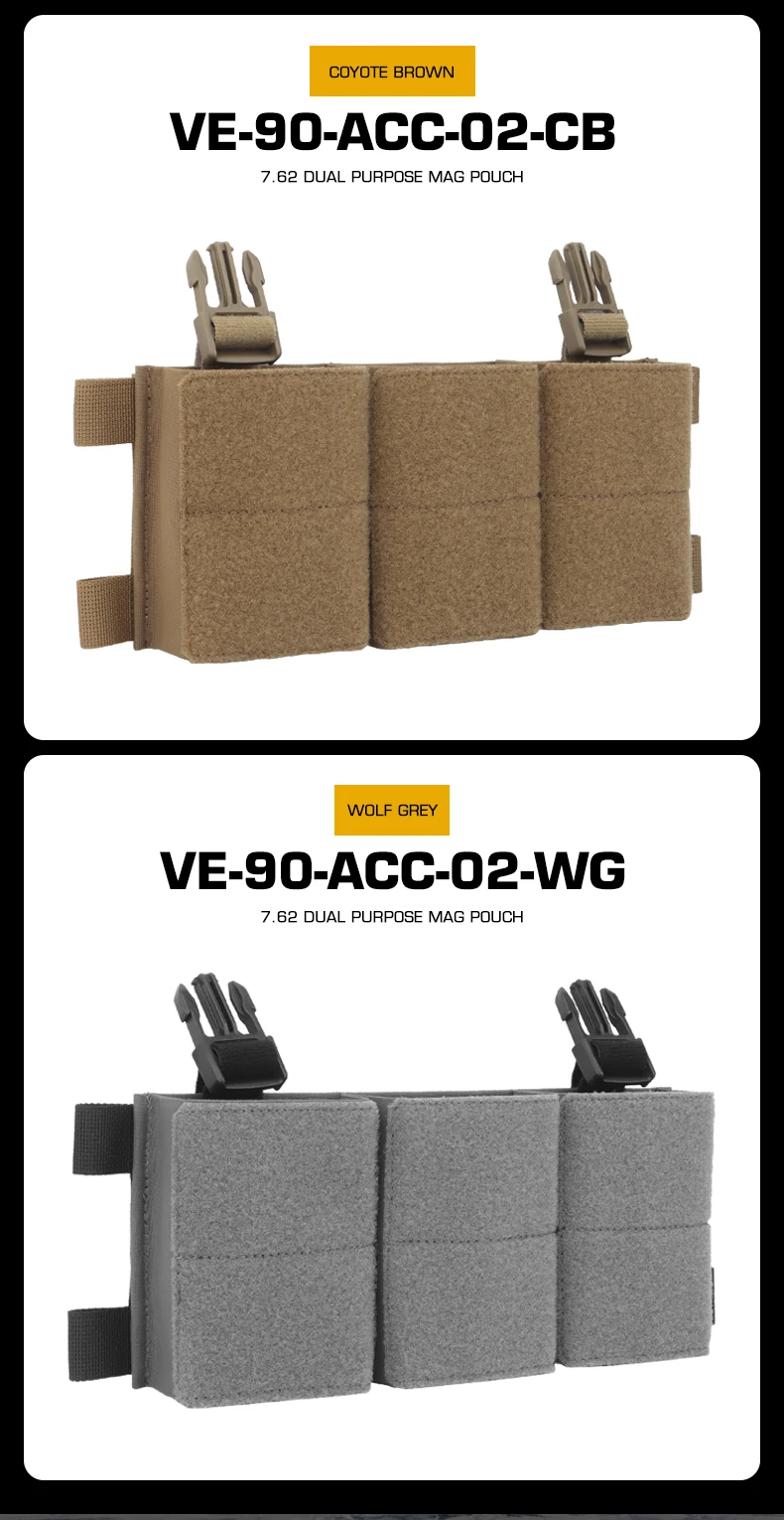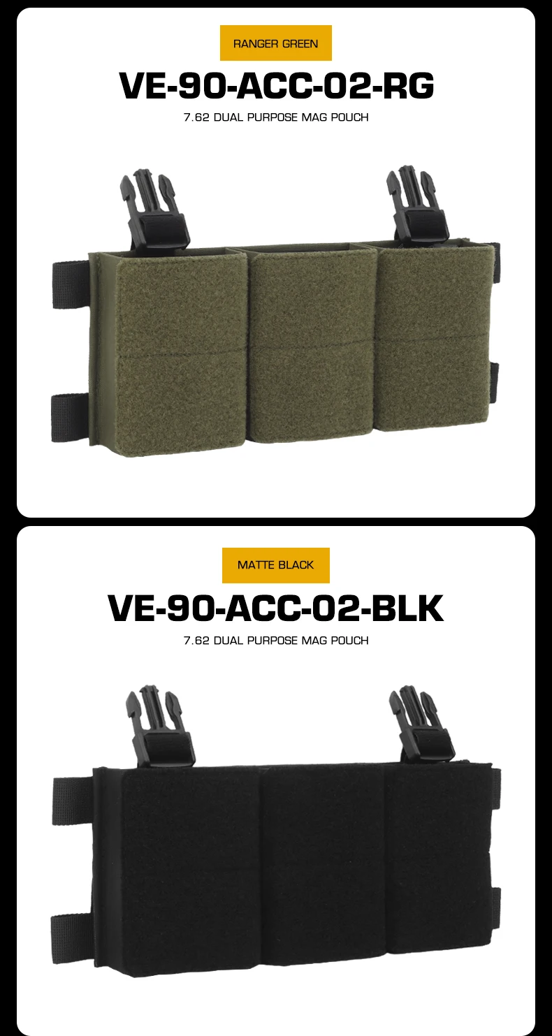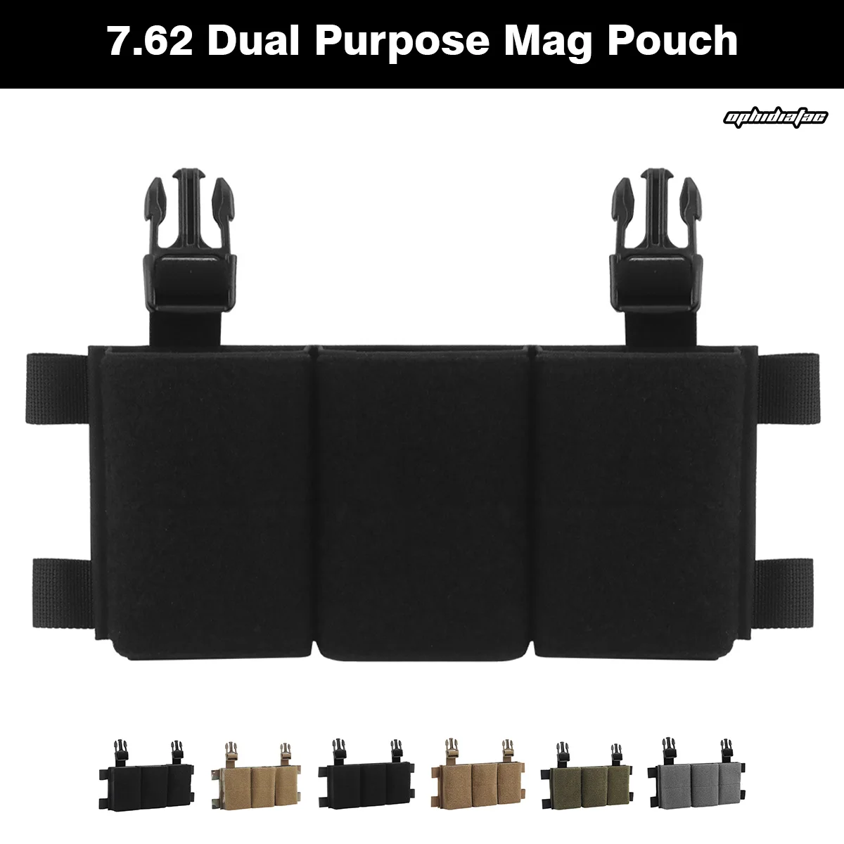Triple 7.62mm Tactical Mag Pouch Laser-Cut MOLLE Silent Elastic Retention Compatible with Chest Rigs for Hunting Shooting Airsoft