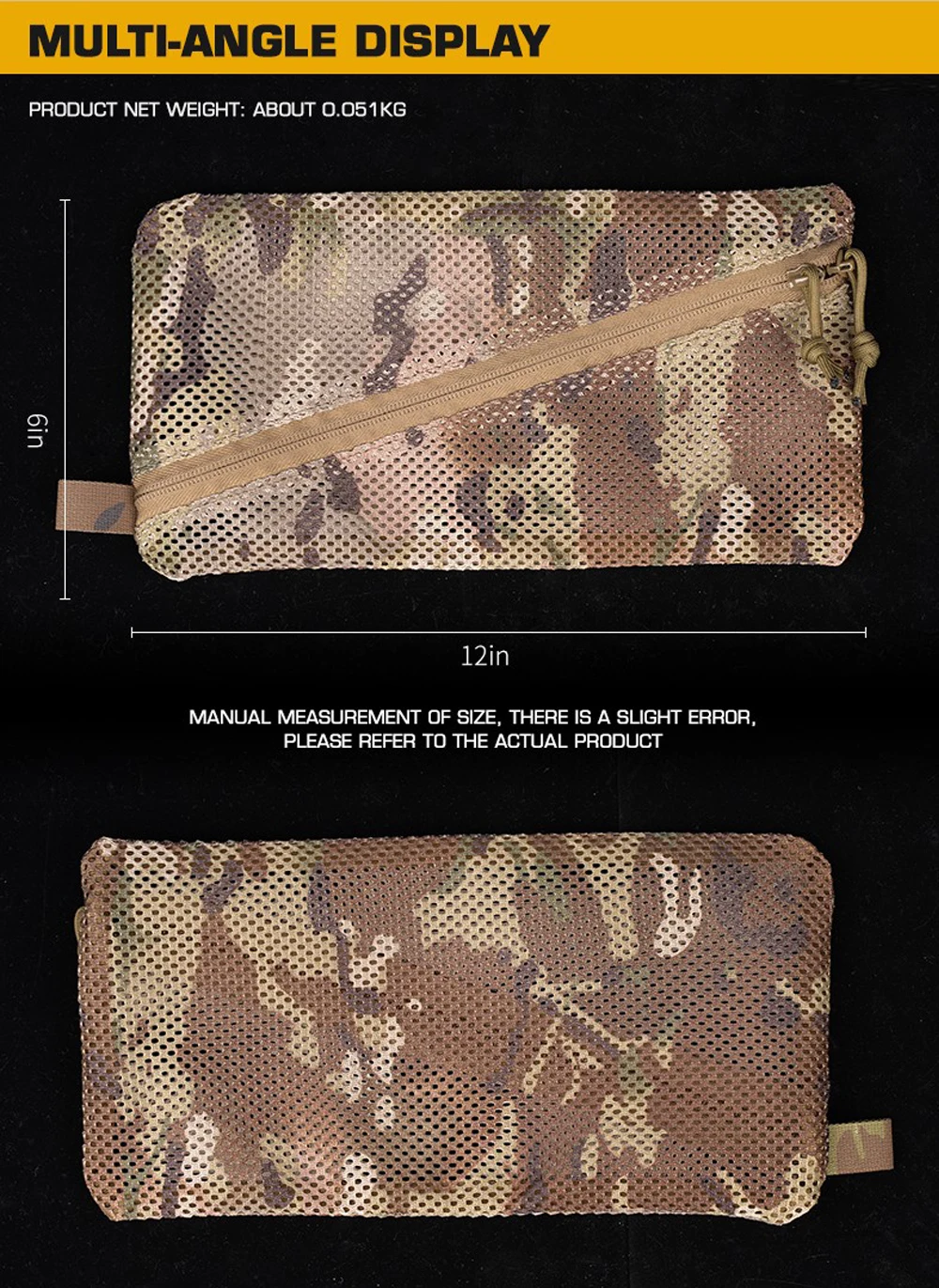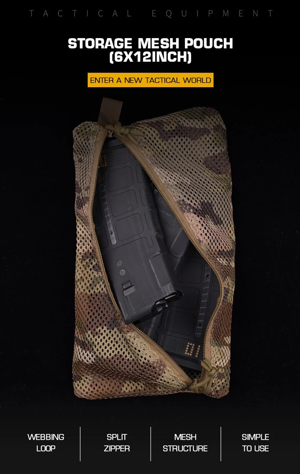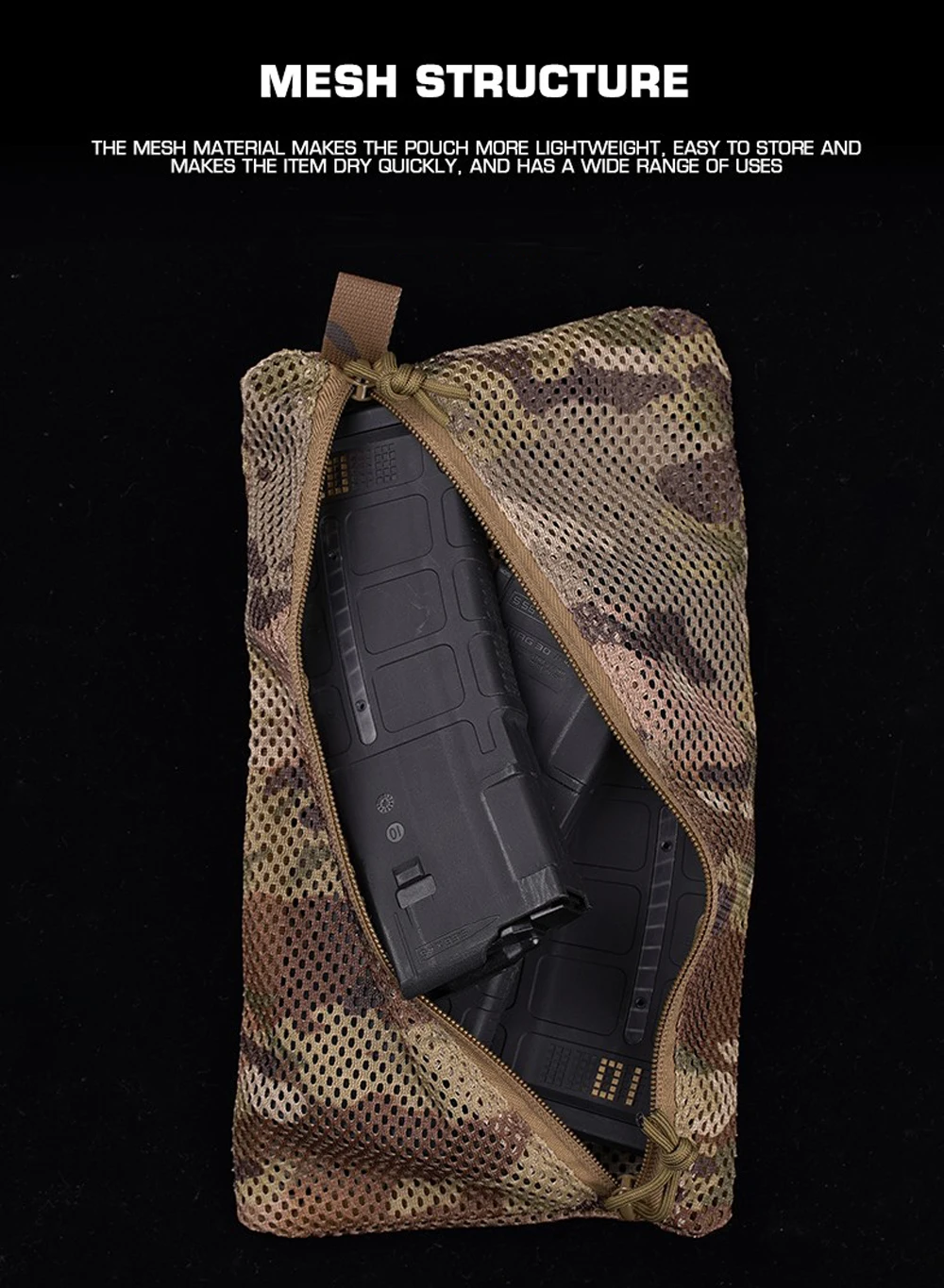 Bolsa de malla de almacenamiento de camuflaje táctico compacto, bolsa de almacenamiento de herramientas MAG para caza al aire libre, Camping, 6x12 pulgadas, secado rápido, transpirable