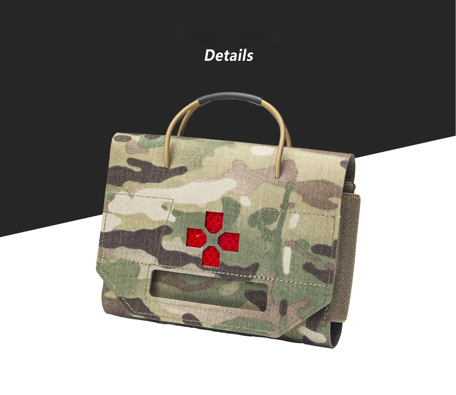 El botiquín de primeros auxilios de acceso rápido con un diseño de estilo extremadamente simple admite el sistema MOLLE y la instalación del cinturón, Y puede separar y extraer rápidamente el revestimiento cargado con suministros de primeros auxilios por adelantado sacando la cubierta de fideos Lamian con una mano.