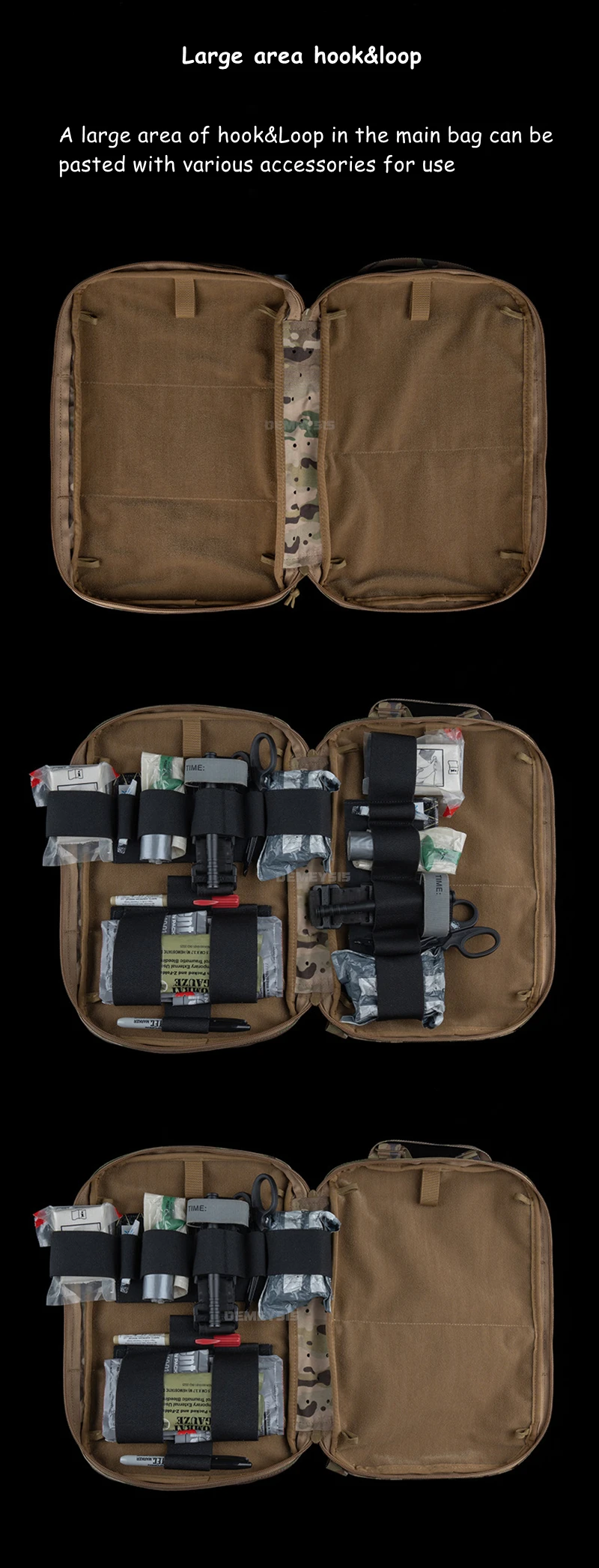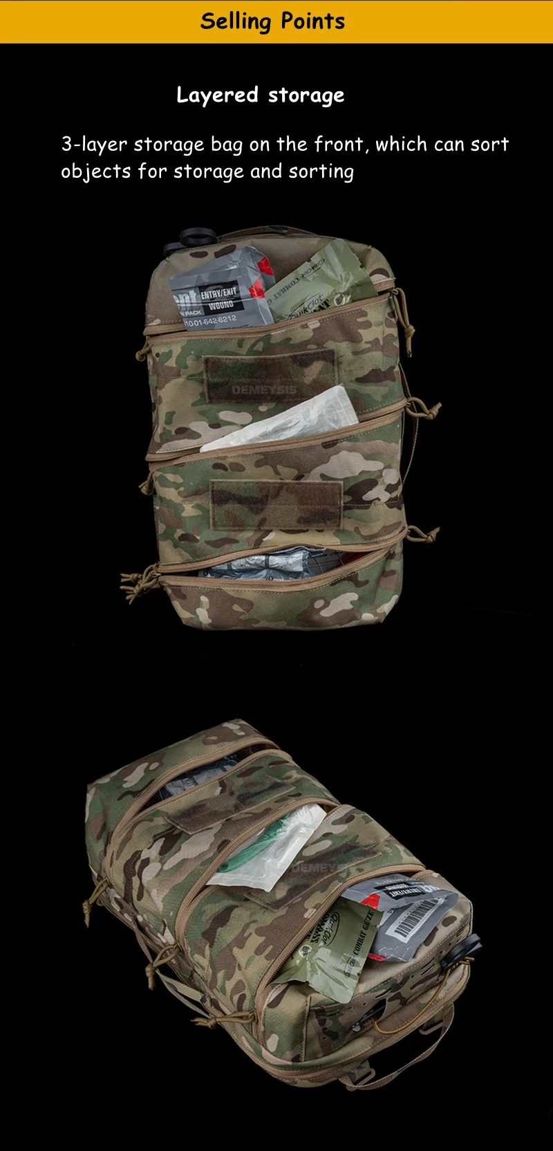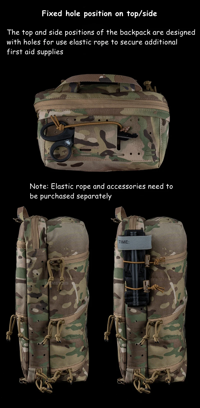 • Bucles MOLLE superior/lateral para fijación de equipos de emergencia