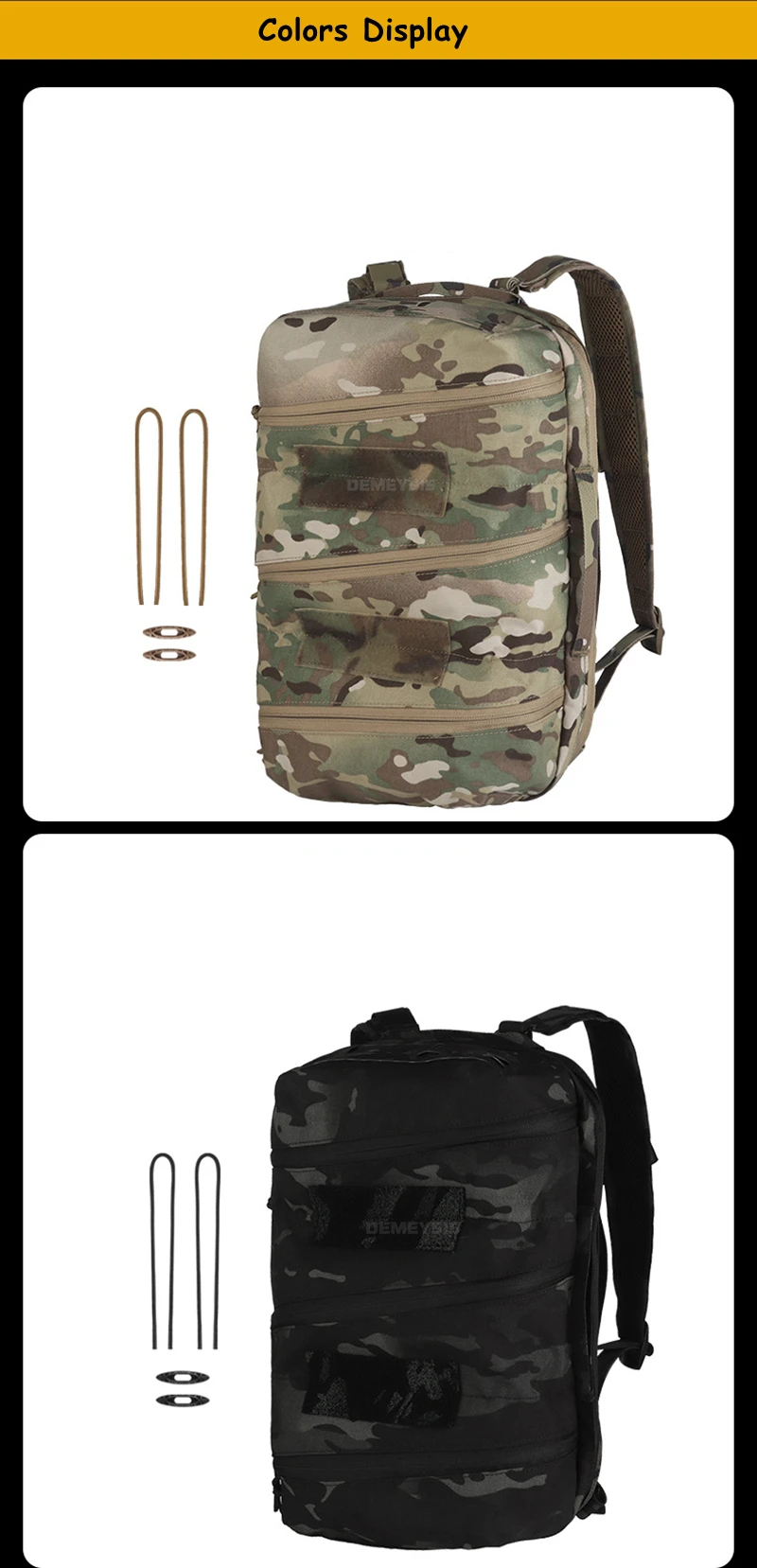 • Panel de gancho y bucle de superficie completa para parches/accesorios tácticos