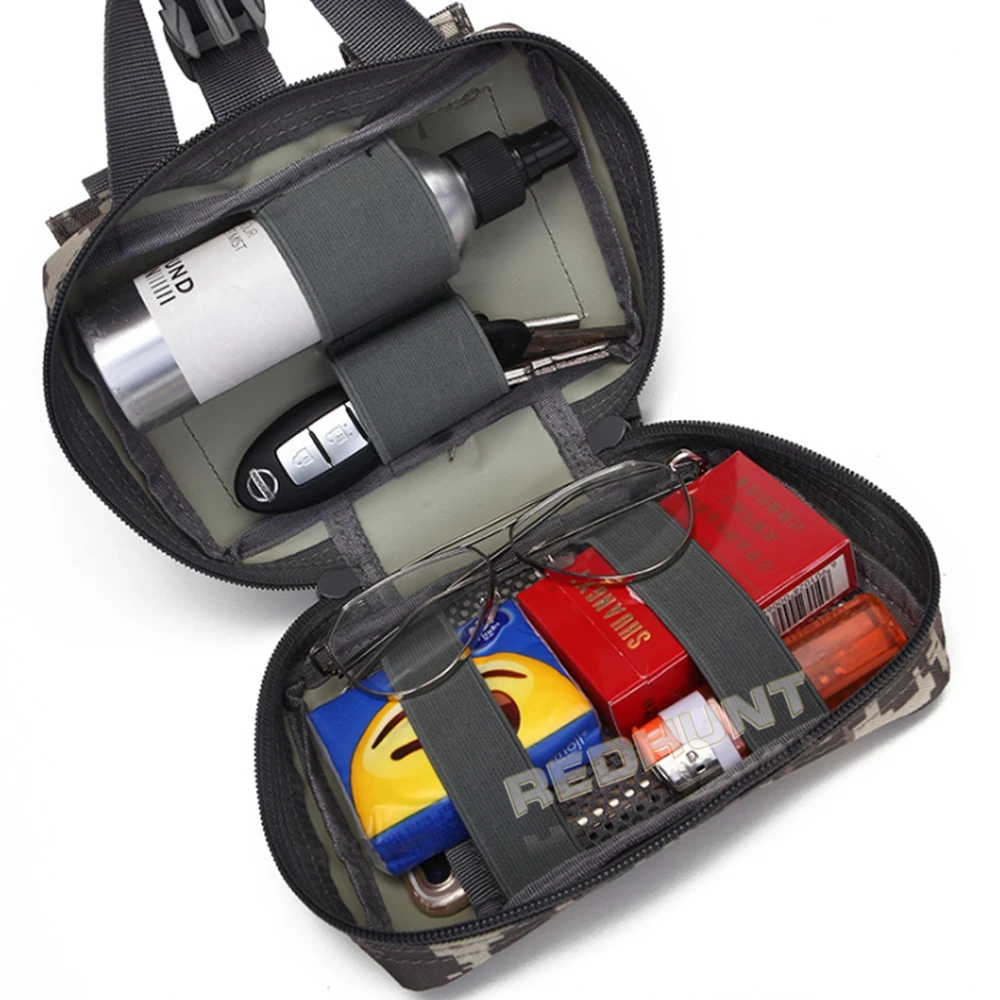 1.Fabricado con material de nailon 600D de alta calidad. 2.Apto para deportes al aire libre 3. Tamaño: 18 cm x 13 cm x 6 cm 4. Color: negro, arena, verde, ACU, CP