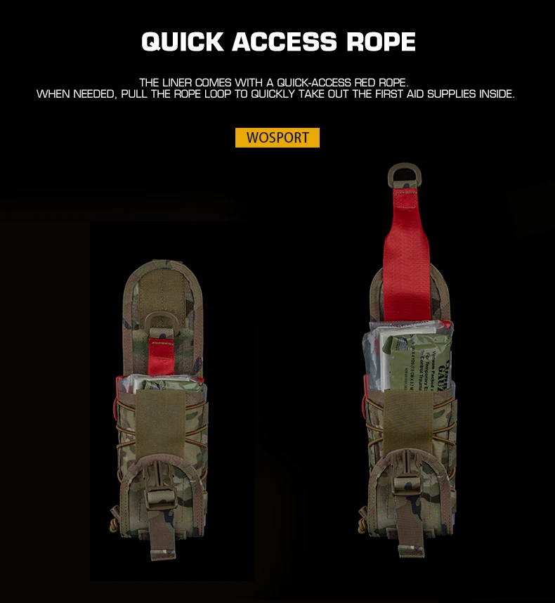 Botiquín de primeros auxilios MOLLE Bolsa médica de 2 vías de uso Bolsa médica compacta V2 con cuerda de acceso rápido para actividades al aire libre