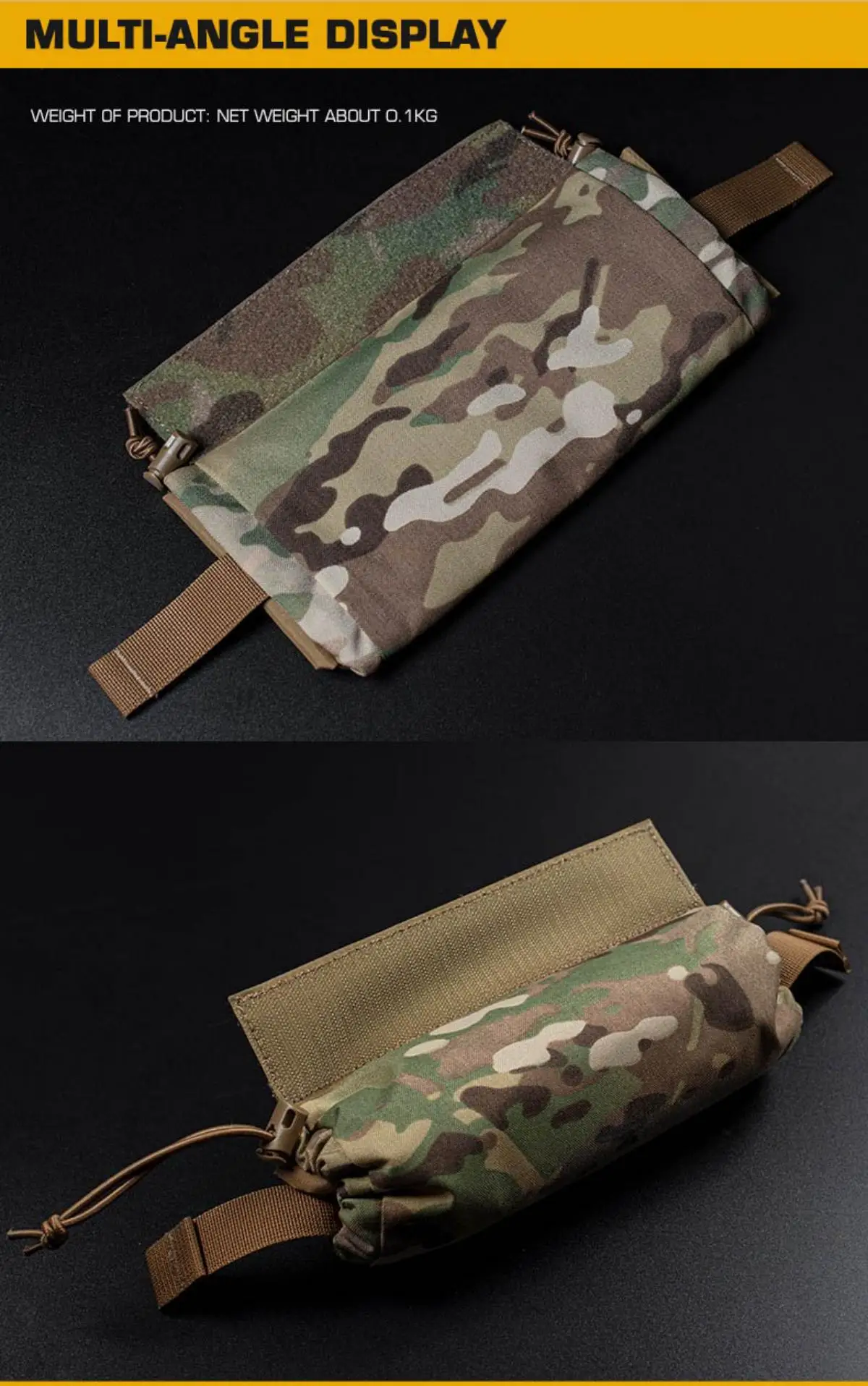 Carcasa exterior segura: el forro enrollado se inserta en la bolsa exterior de camuflaje duradera.Dos bandas de goma laterales aprietan la boca, evitando que se derrame los artículos, asegurando que su kit permanezca intacto durante un movimiento vigoroso.