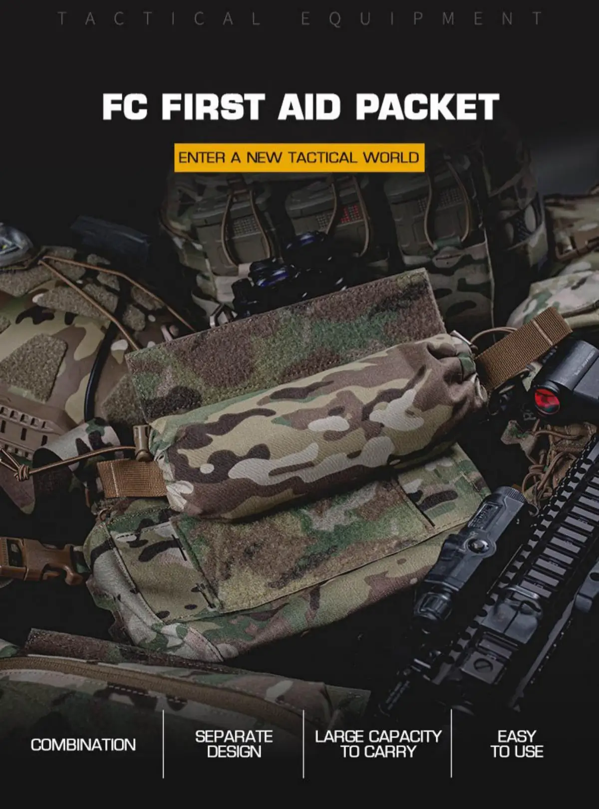 ENTERE UN NUEVO MUNDIAL TÁCTICO con el Paquete de primeros auxilios FC.Esta innovadora bolsa médica modular (peso neto: ~0,1 kg) redefine la preparación para emergencias.Su revolucionario diseño dividido extraíble, revestimiento médico enrollable y una carcasa exterior separada, lo que permite una personalización incomparable, fácil recarga y una rápida implementación.Completo con un mango de liberación rápida apto para guantes y un soporte de cierre mágico universal, organiza de forma segura un IFAK personal completo (Kit de primeros auxilios individual) para un acceso inmediato cuando cuenta los segundos.