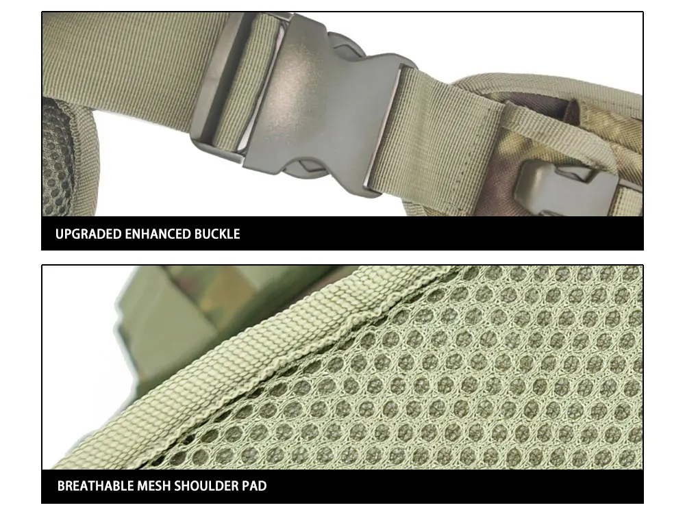Diseño del sistema MOLLE, un total de 10 tamaños diferentes, diferente posición de la bolsa.Otra carga fácil adjunta al paquete;