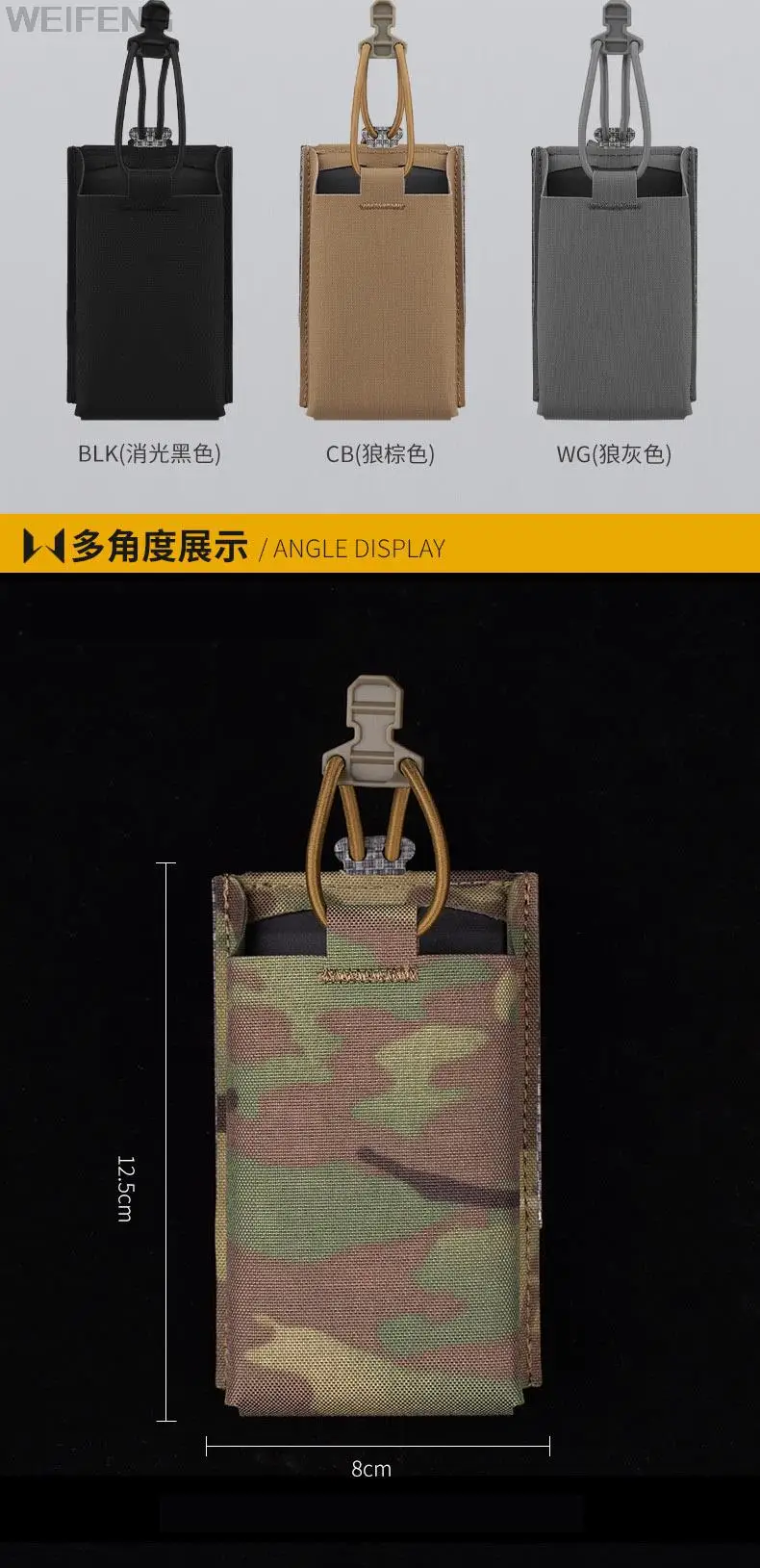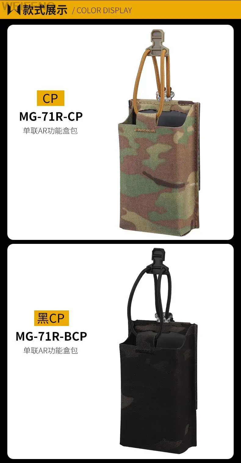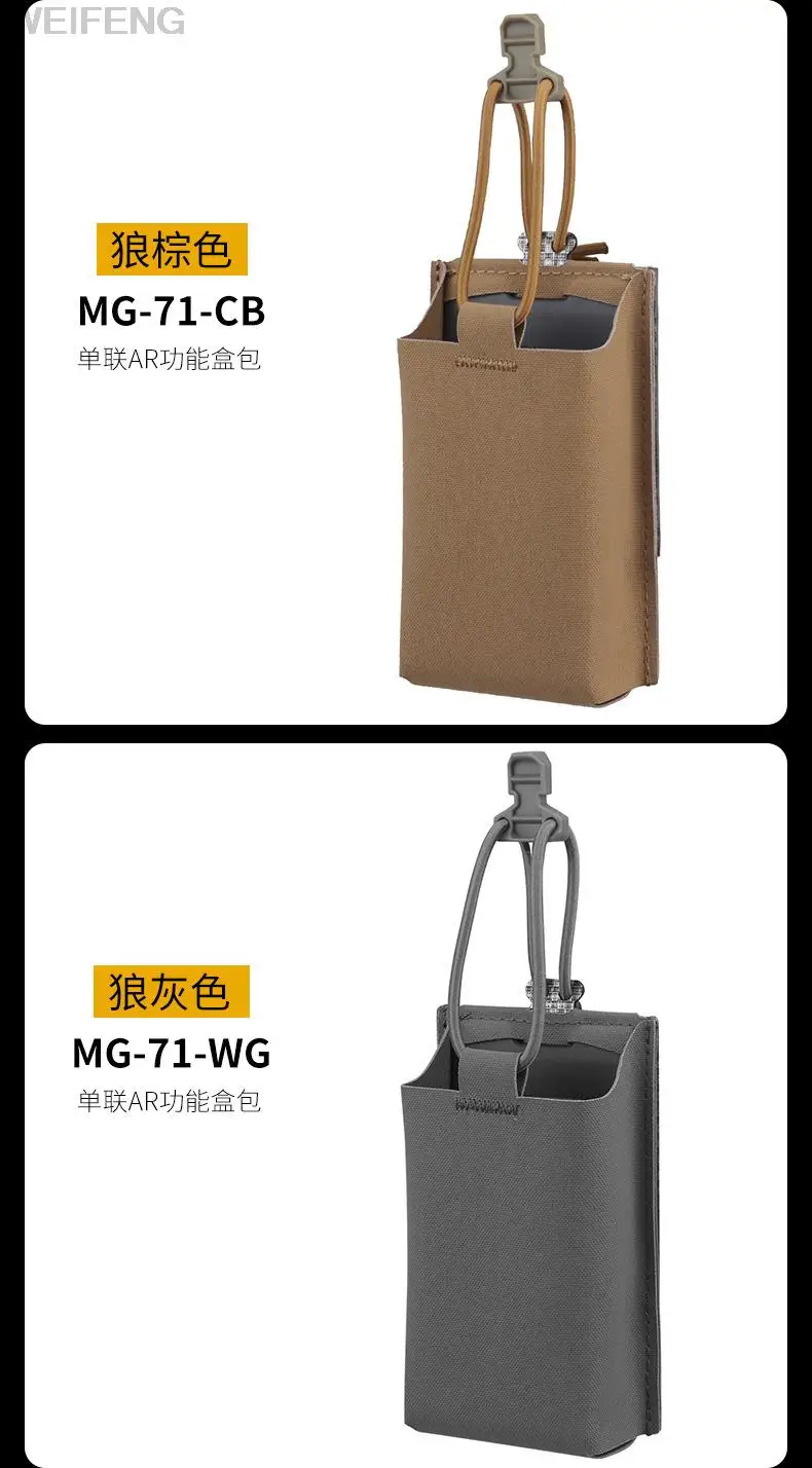 Nombre del producto: bolsa individual AR15 M4 5,56mm tamaño del producto: 14*8*4cm peso neto del producto: 0.095KG peso bruto del producto: 0.105KG color del producto: negro, verde, marrón, gris, CP, bkcp Material principal: el paquete de cordura incluye: 1 * bolsa magnética