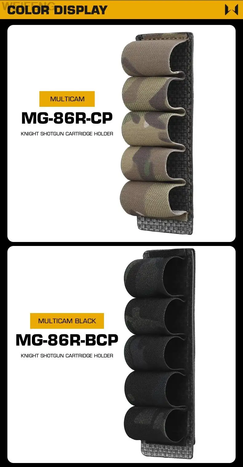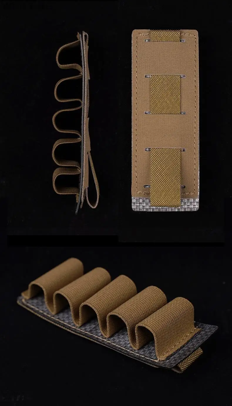 Nombre del producto: pegatina colgante de escopeta de caballero Embalaje del producto: Tamaño del producto empaquetado en Bolsa: 13*5*2cm Peso neto del producto: 0.024KG Peso bruto del producto: 0.035KG Color del producto: negro mate/gris Lobo/Verde Ranger/marrón Coyote/Multicam/Negro Multicam Material principal: banda elástica de tela Cordura El paquete incluye: 1 * bolsa de munición