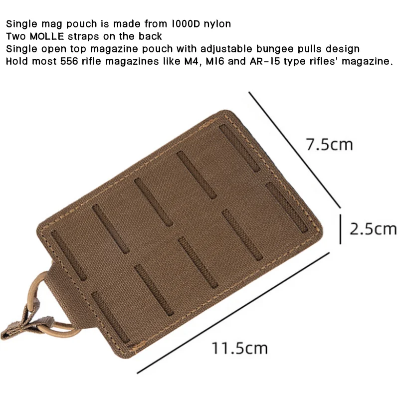 Bolsa MOLLE 5,56 individual para exteriores, soporte para revistas M4 M16, soporte magnético abierto, bolsa de accesorios multifuncional