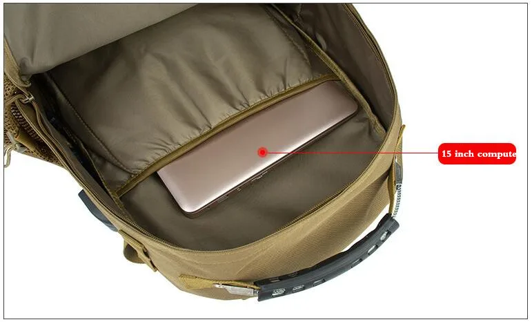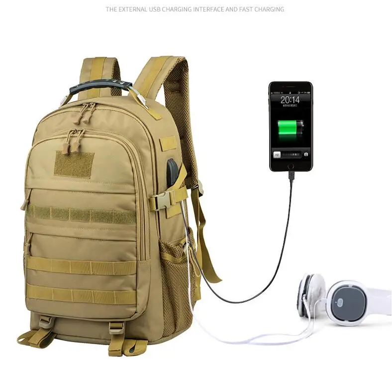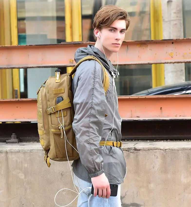 Bolsa Molle de carga USB, mochila táctica para portátil de 15 pulgadas, para acampar al aire libre y senderismo, 30l