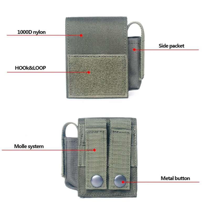 3 La bolsa tiene un sistema molle en la parte posterior de la bolsa que se puede colgar en el cinturón, el chaleco o la mochila para liberar su mano cuando realiza actividades al aire libre.