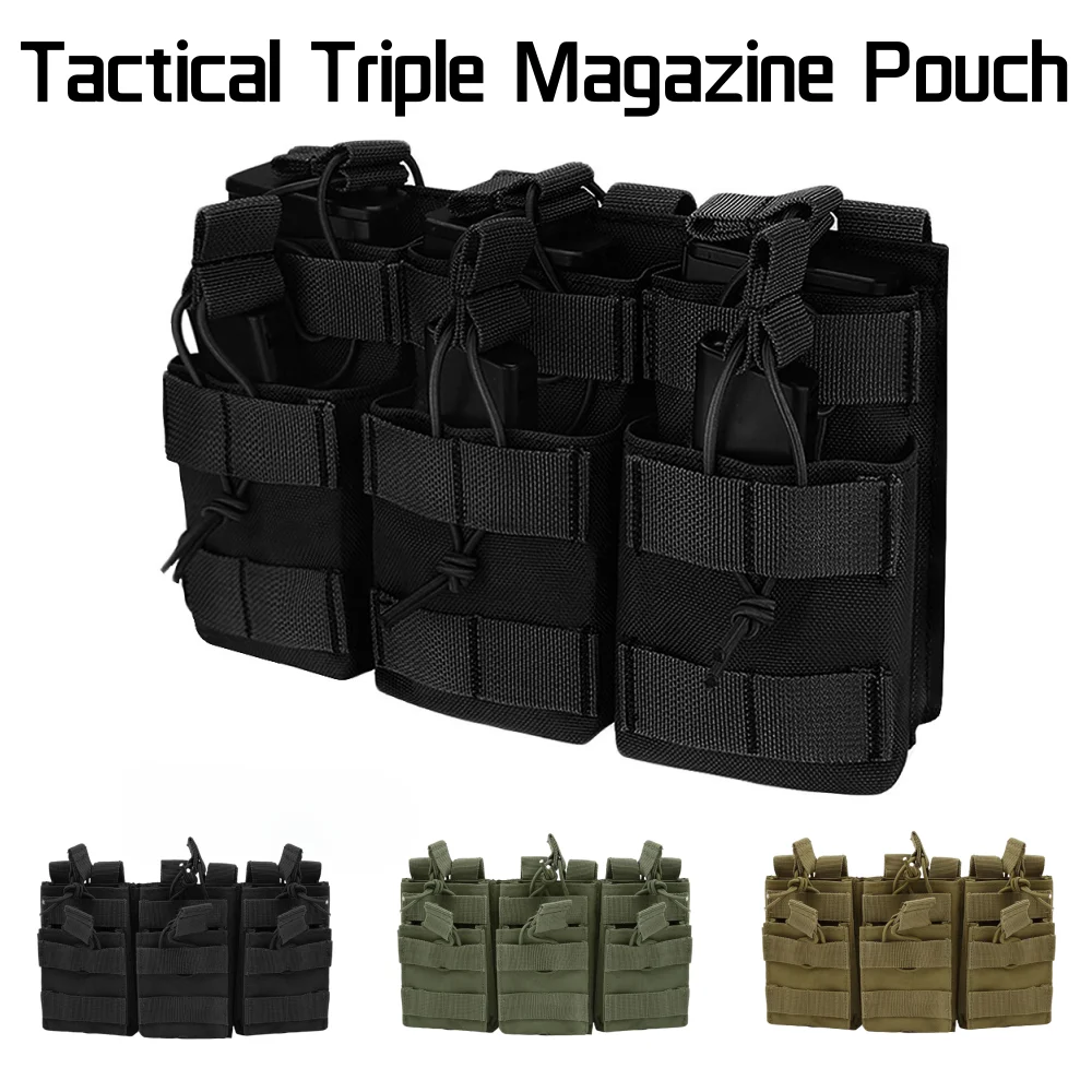 Bolsa Molle triple para revistas al aire libre, bolsas Mag de doble capa abiertas, bolsa Universal con soporte para cartucho para M4 M14 M16 AK AR