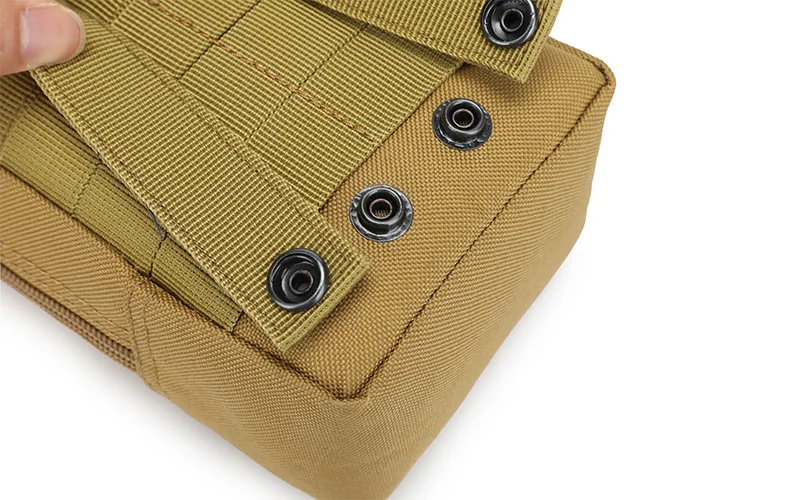 Con el botón de presión en la parte posterior, es fácil colocar la bolsa en su cinturón o chaleco molle.