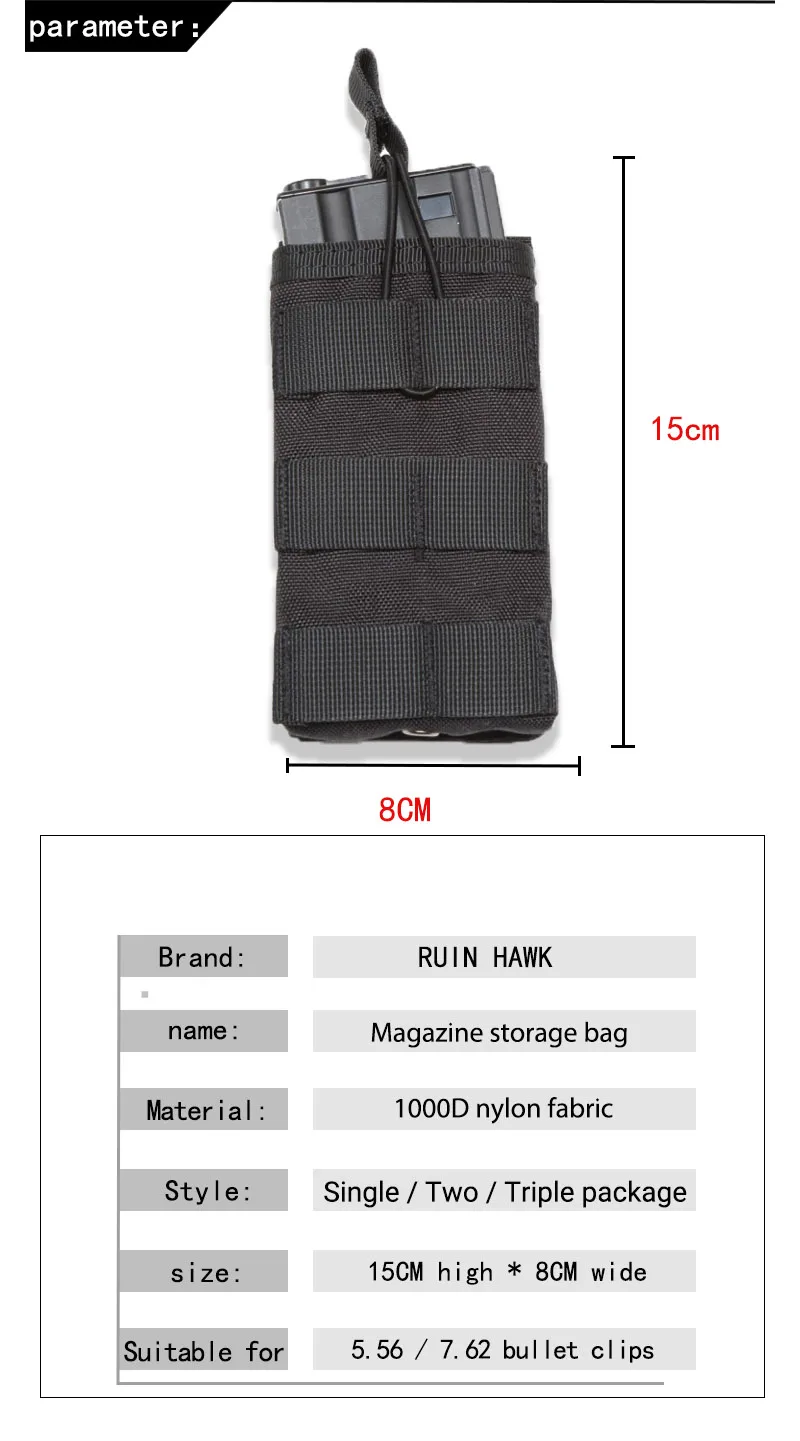 Bolsa Molle de nailon militar para pistola táctica, bolsa para revista de caza, equipo, bolsa para revista, bolsa de tres barriles