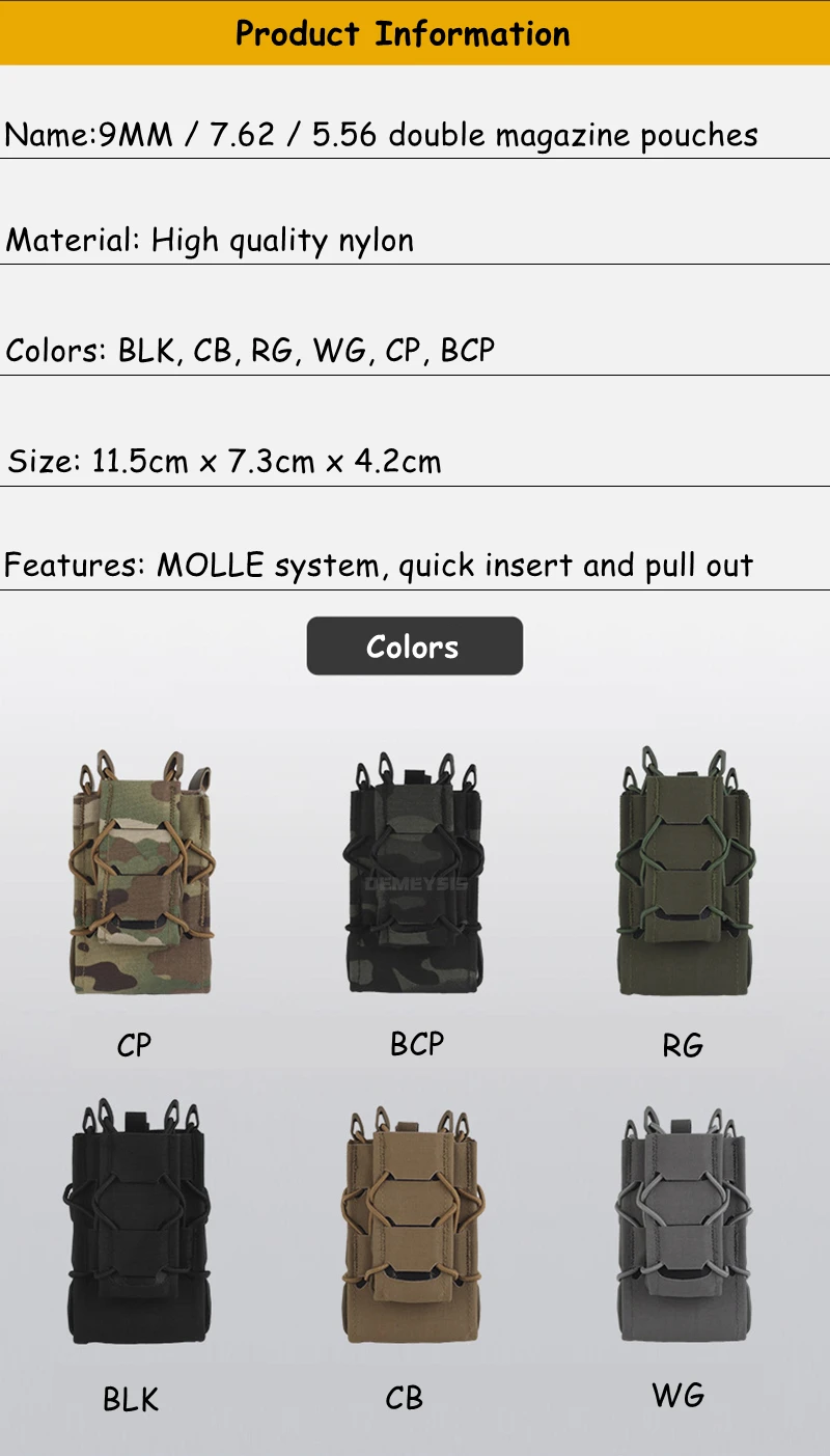 ⚡Dual-Caliber Fit- Securely holds 9MM/7.62/5.56 mags