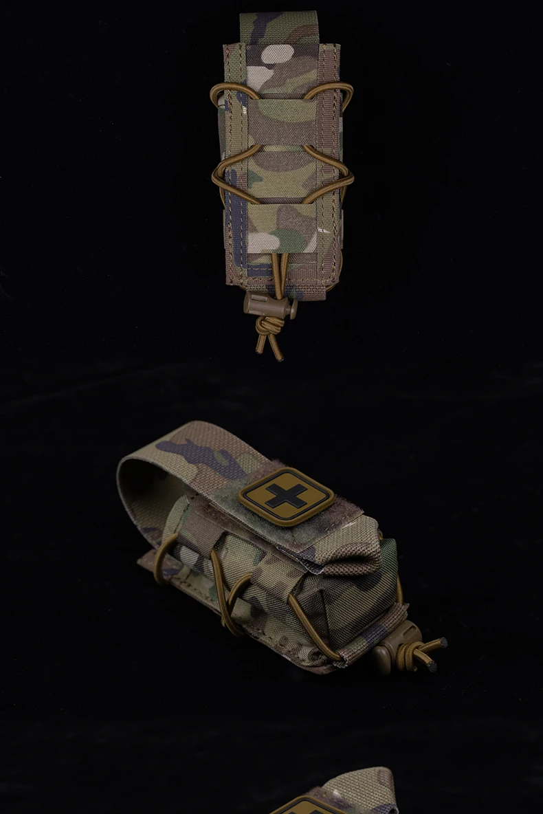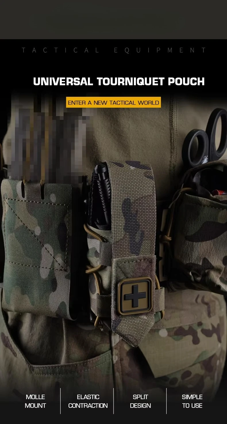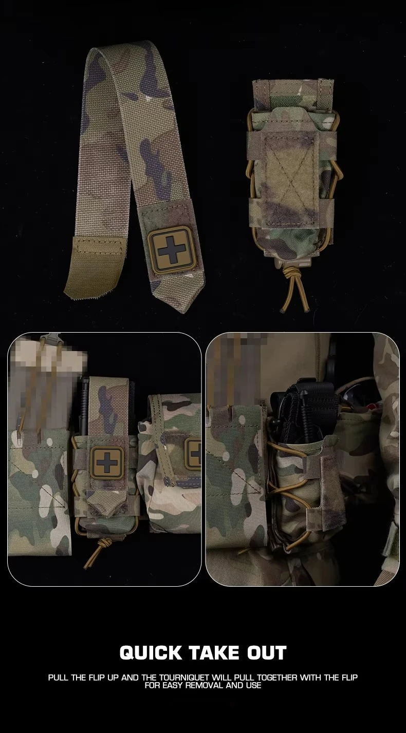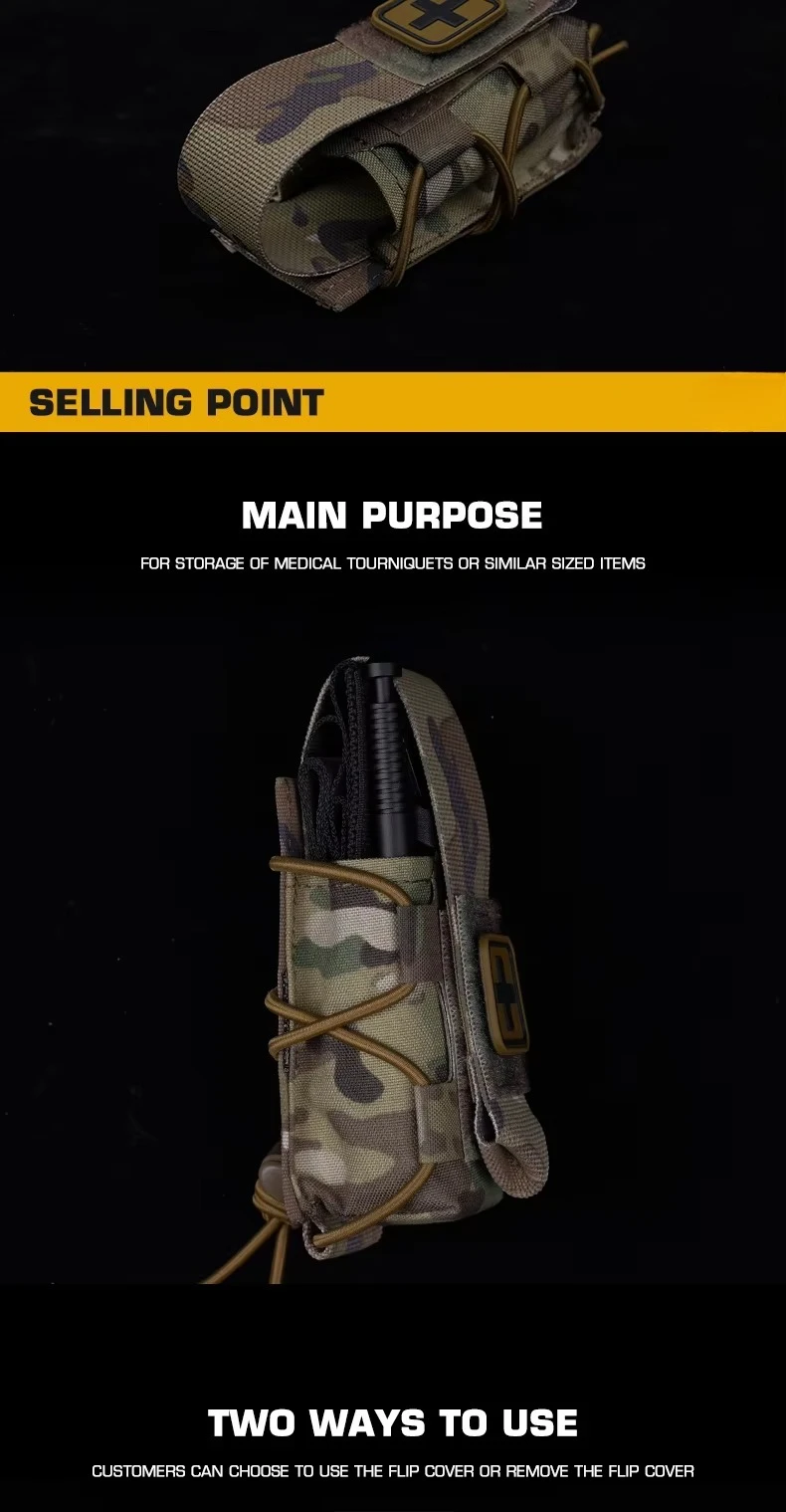 Bolsa de torniquete Universal de diseño dividido, bolsa de montaje MOLLE que se adapta al soporte de placa de cinturón, accesorios de cazaInformación del producto Artículo No.: BP-137 Escena aplicable: actividades de equipo, juegos CS, accesorios de películas.