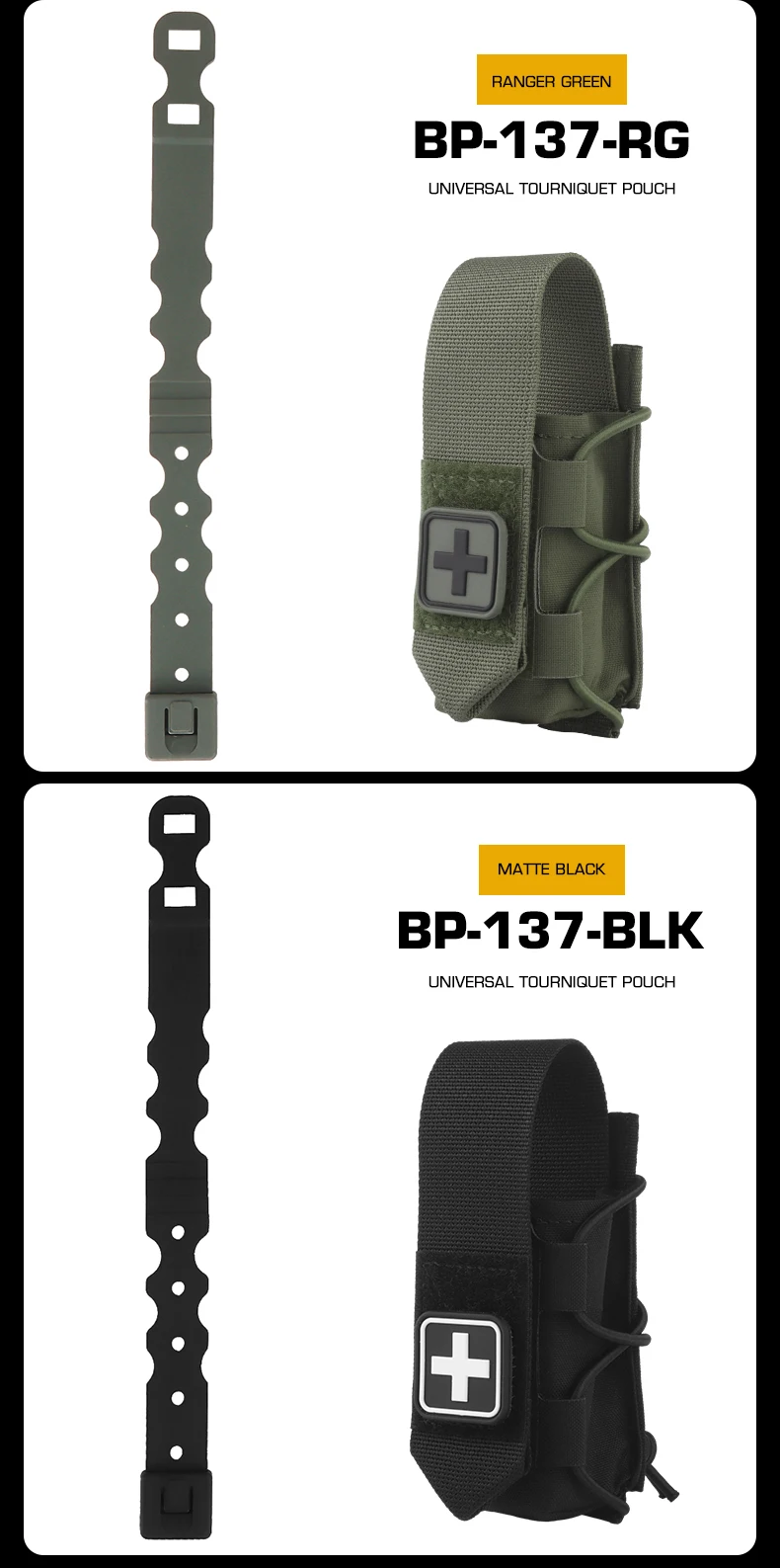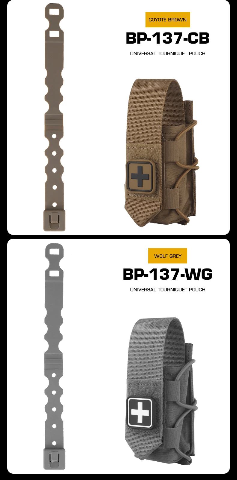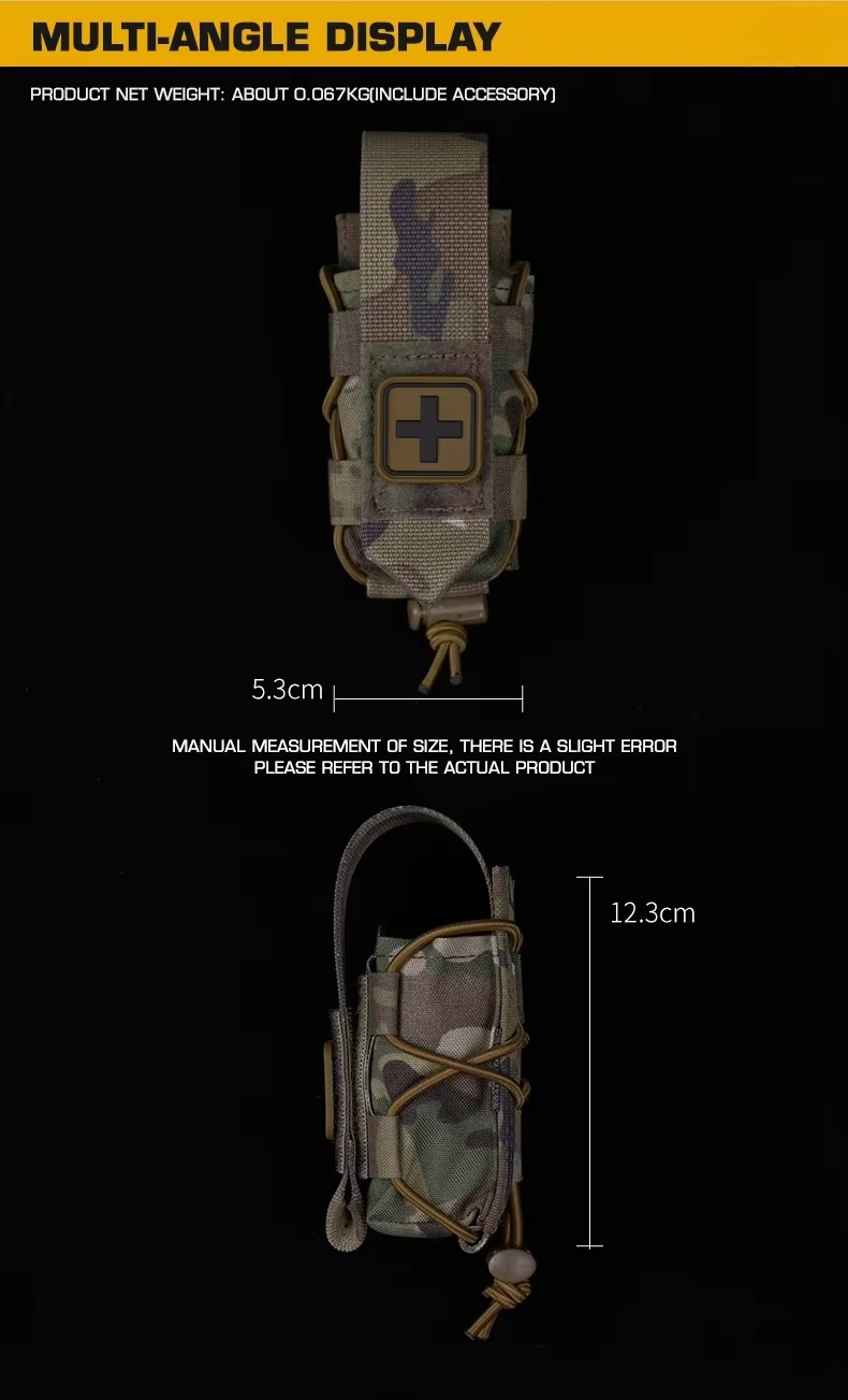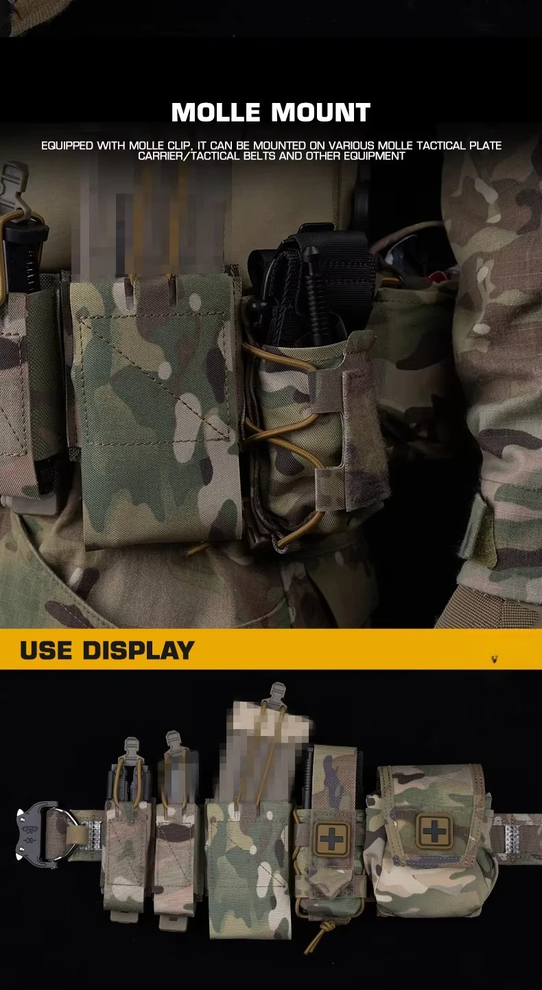 Bolsa de torniquete Universal de diseño dividido, bolsa de montaje MOLLE que se adapta al soporte de placa de cinturón, accesorios de cazaInformación del producto Artículo No.: BP-137 Escena aplicable: actividades de equipo, juegos CS, accesorios de películas.