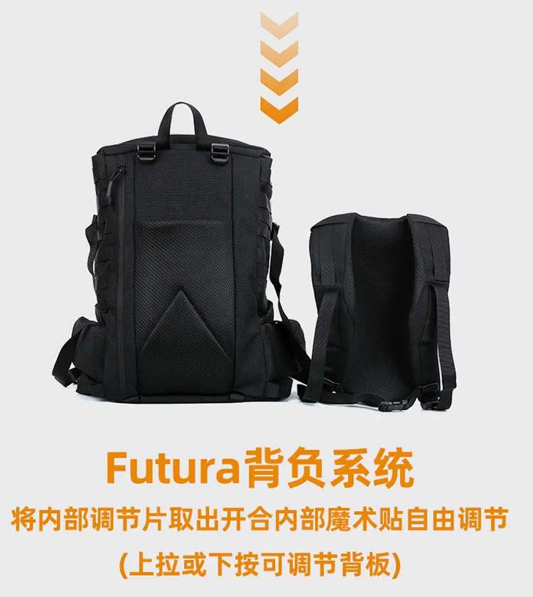 Sistema de mochila Futura, retira la placa de ajuste interna y abre