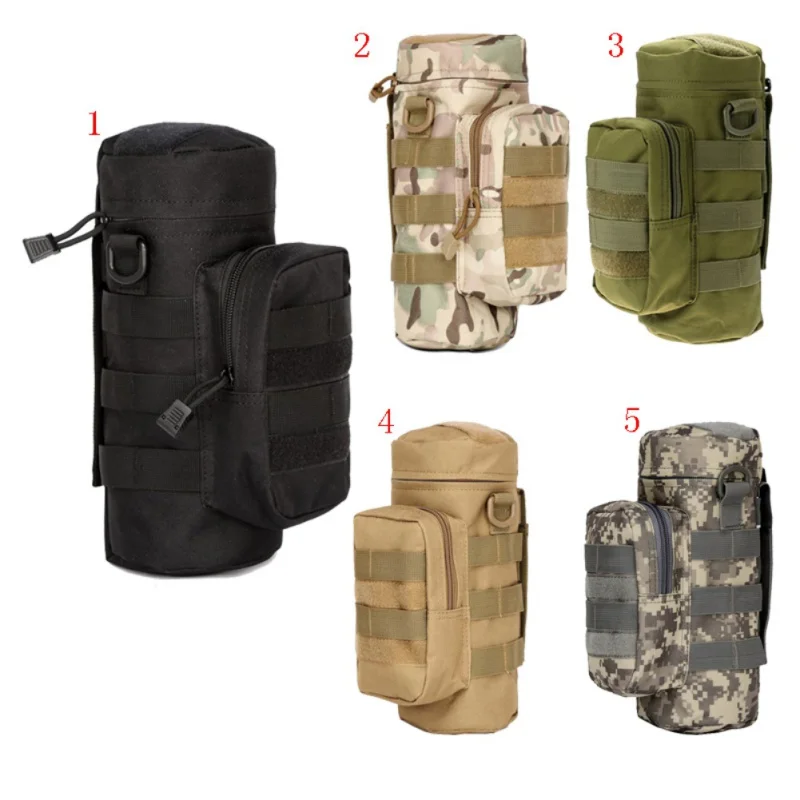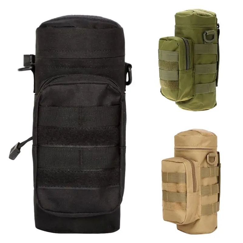 Bolsa de nailon 600D para botella de agua, sistema Molle táctico para exteriores, soporte para hervidor, accesorios de caza