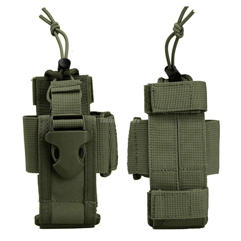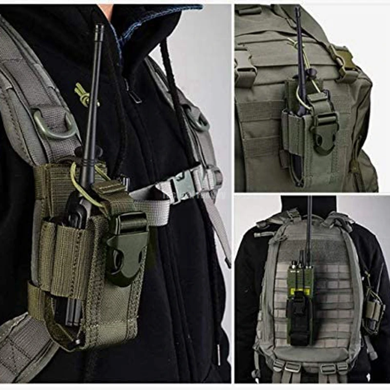 Estuche de soporte de radio multifuncional, bolsa de herramientas de almacenamiento ajustable; Tamaño ajustable, funda de radio bidireccional; Sistema MOLLE, fácil de unir a chalecos, mochilas y agujeros de drenaje de cinturón MOLLE.
