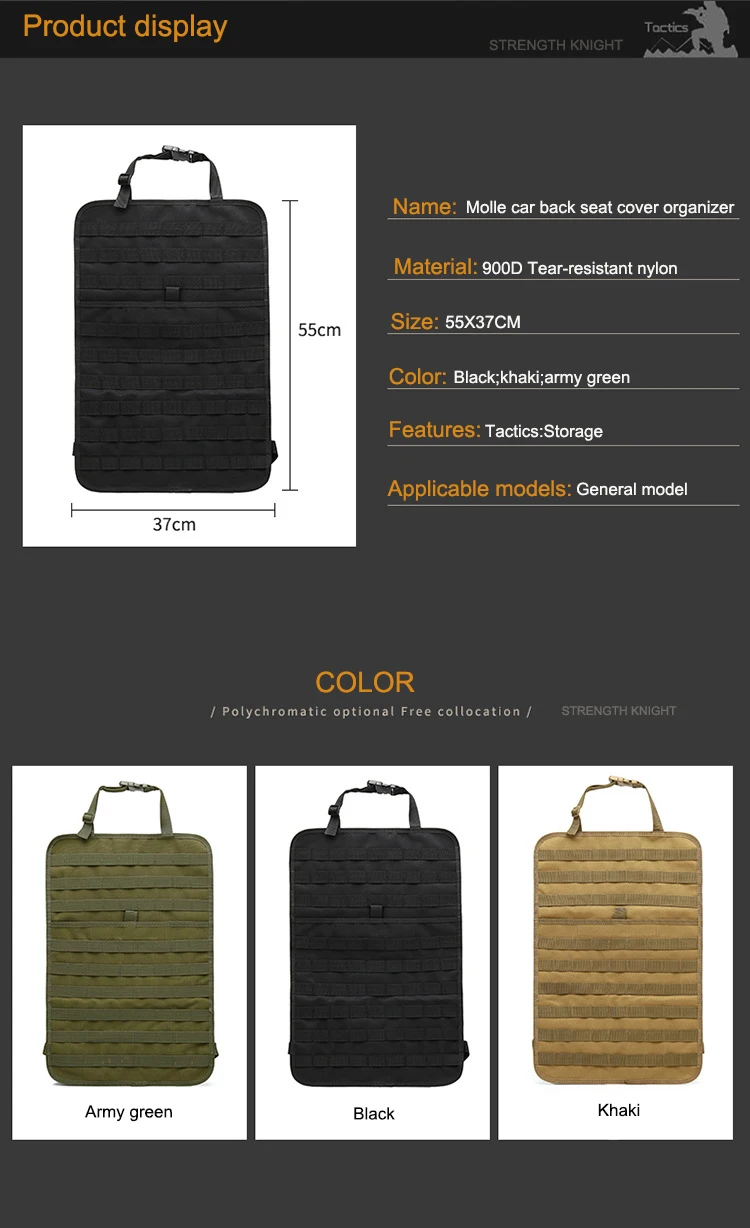 Bolsa organizadora de asiento Molle, mochila multifunción para asiento de coche, bolsillos de caza al aire libre 1000D, accesorios tácticos