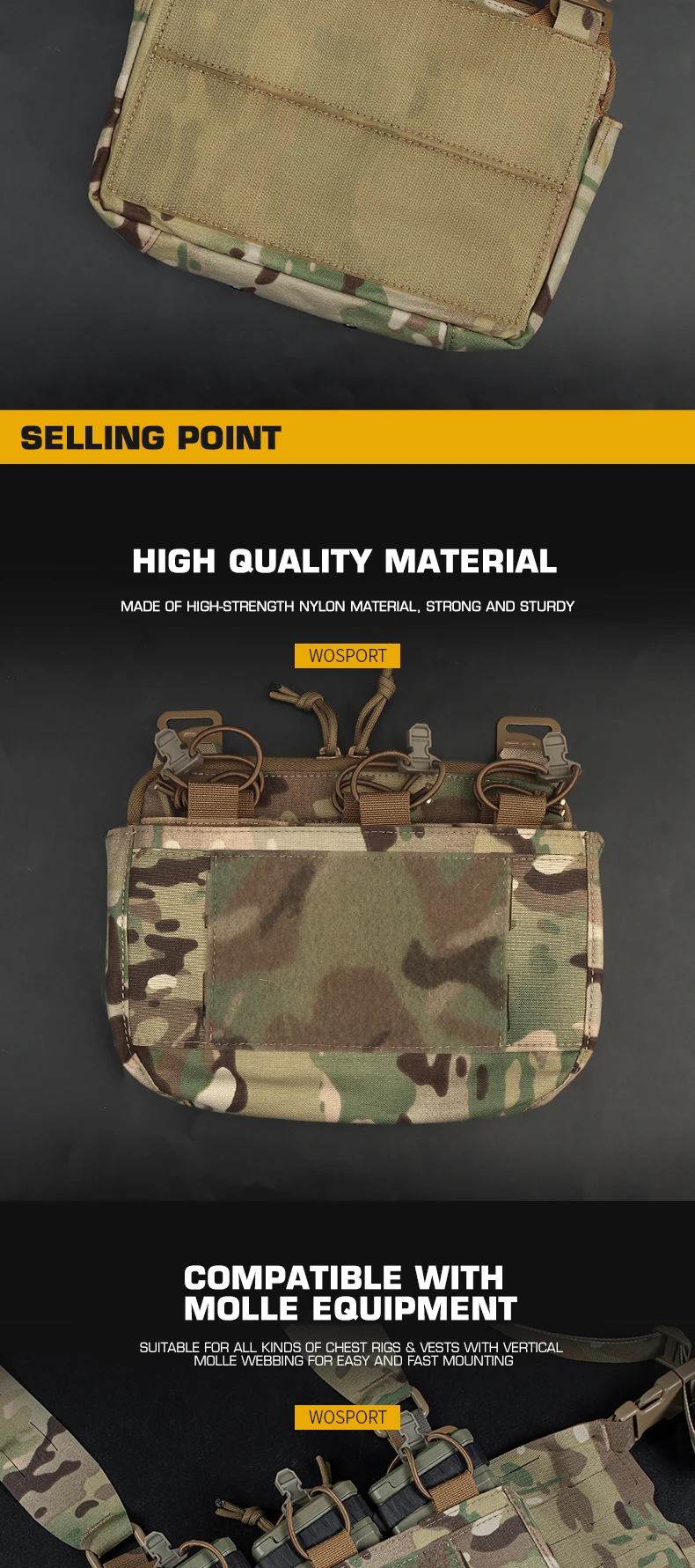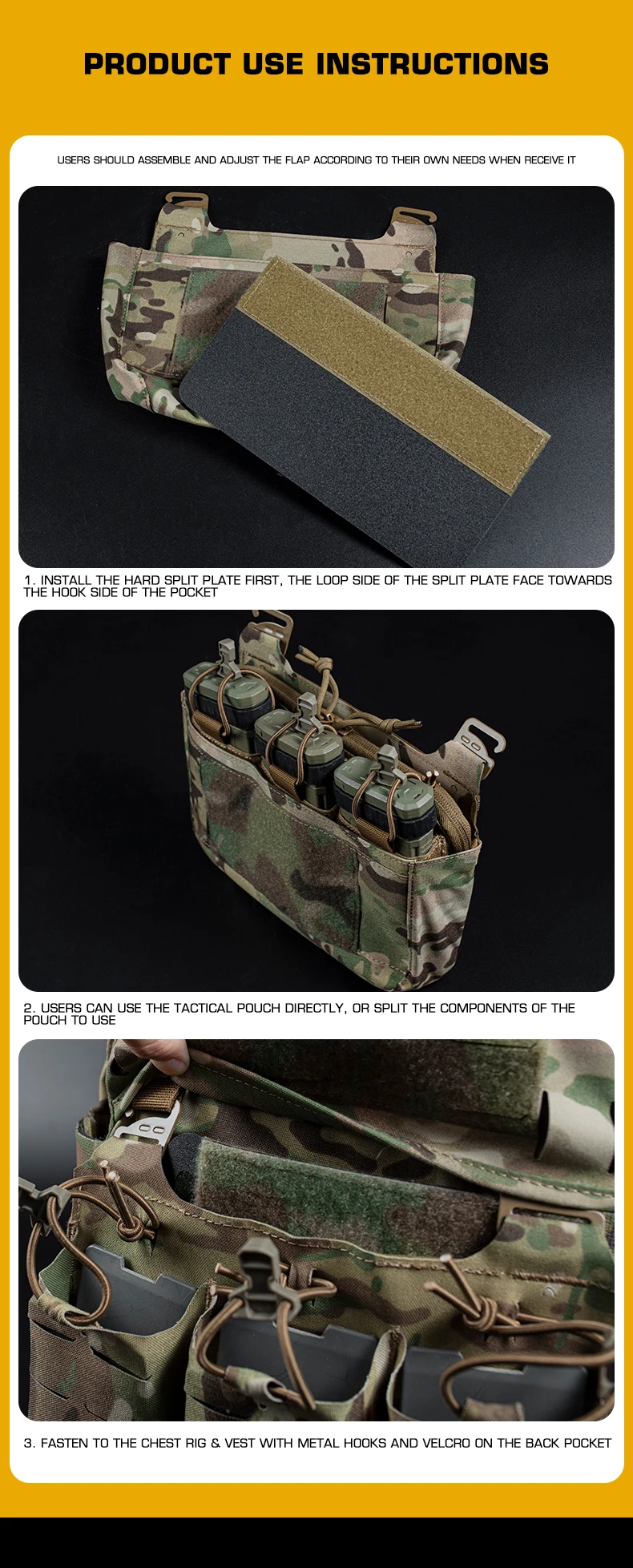 Bolsa táctica DOBLE con solapa frontal y triple bolsillo para Panel frontal para chaleco táctico Ferro FCPC V5