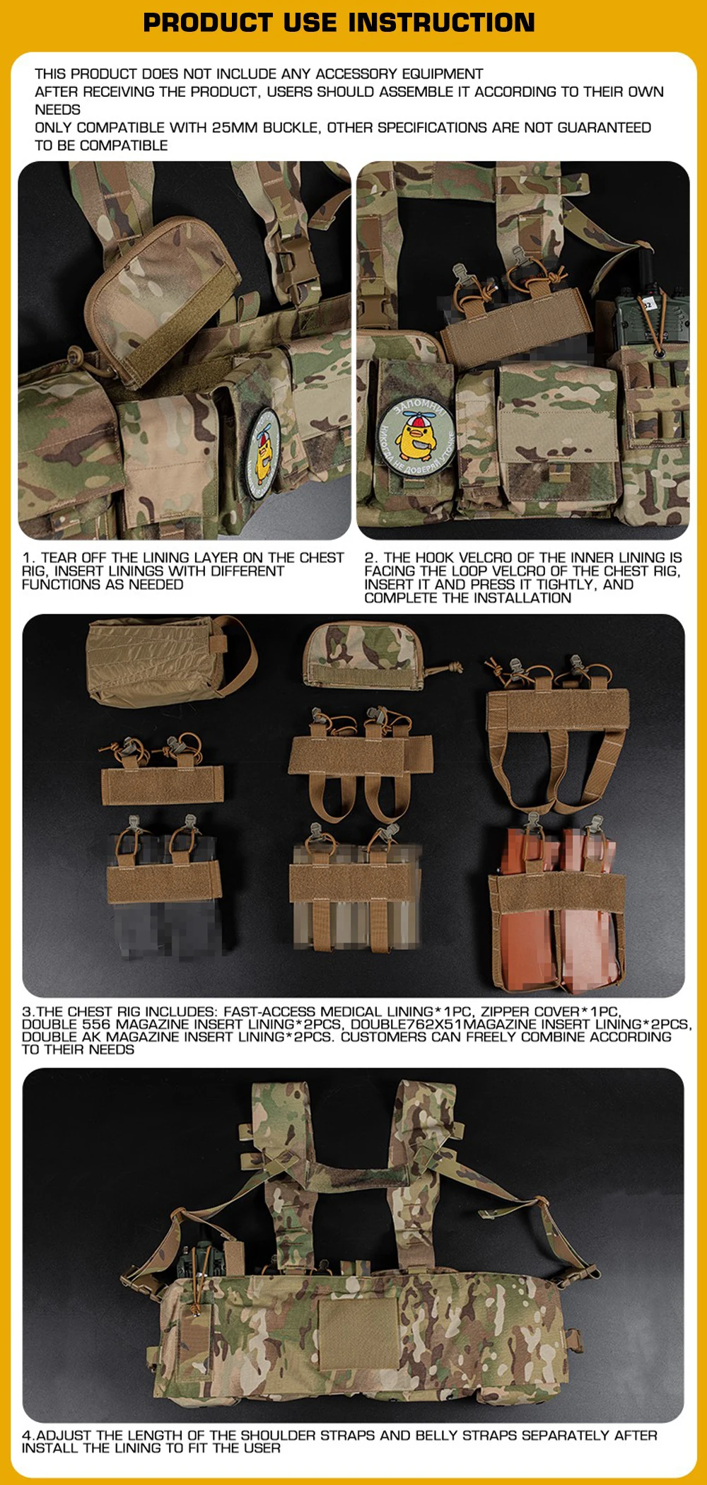 Bolsa de patrulla para chaleco de caza, aparejo de pecho táctico UW con almacenamiento de extensión funcional interna de 8 Uds para bolsa de revistas de Radio