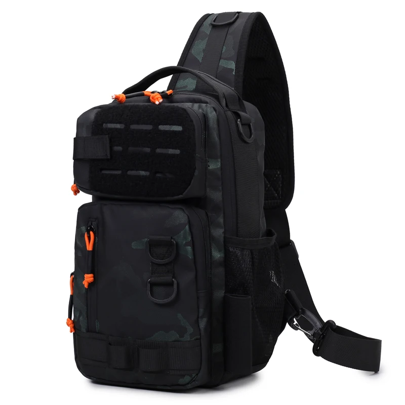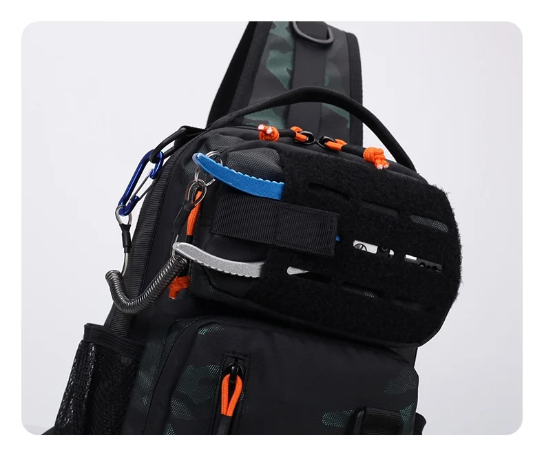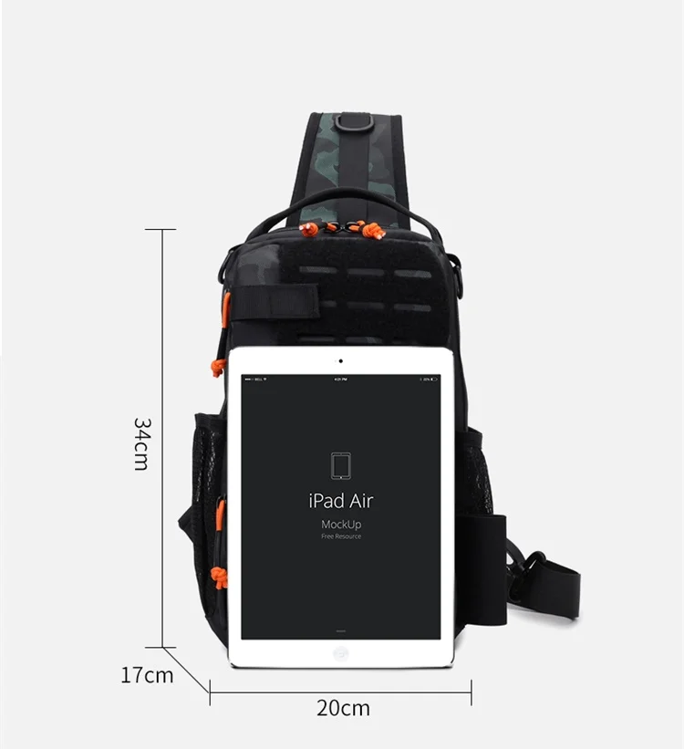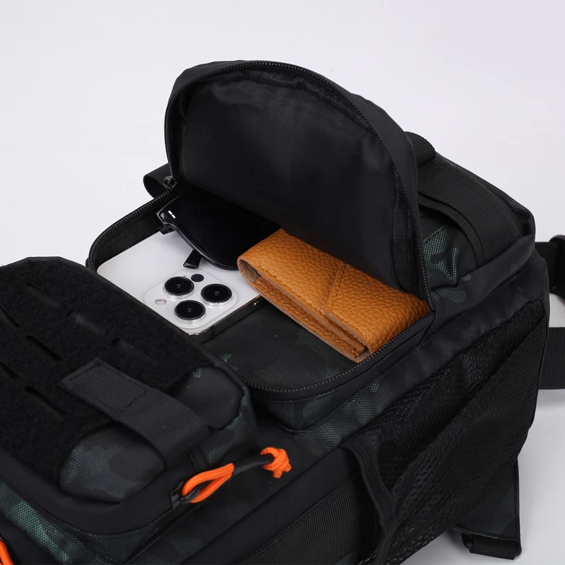 Equipada con un sistema de eslinga MOLLE, esta bolsa de pecho permite sujetar fácilmente bolsas y accesorios adicionales, mejorando su funcionalidad.