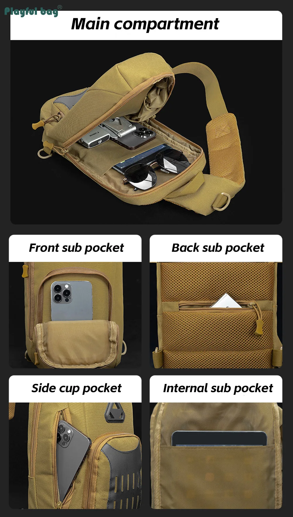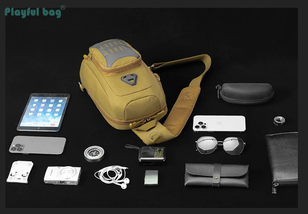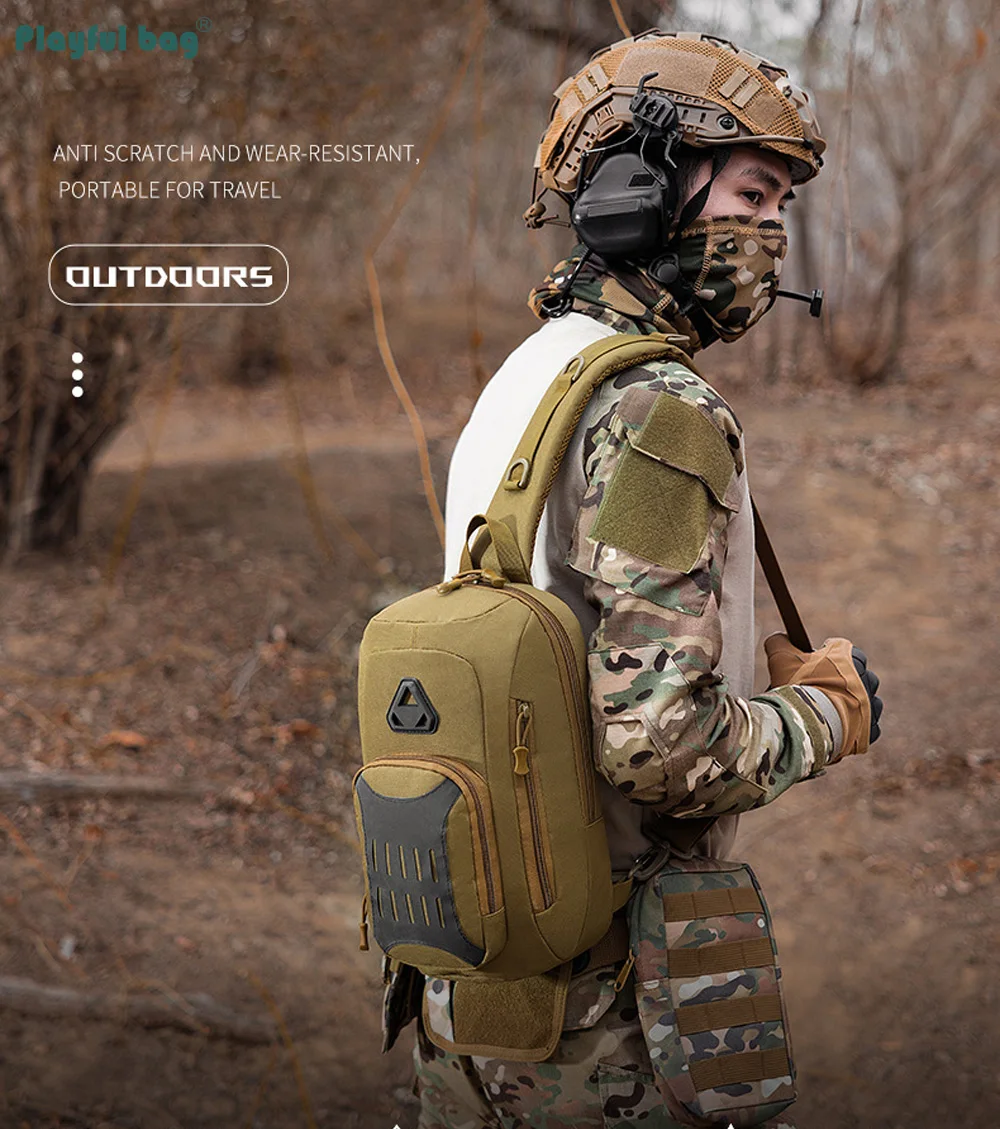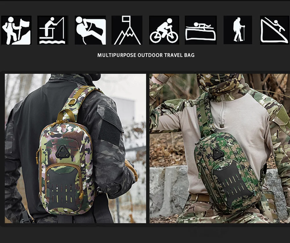 Product Name: Outdoor Tactical Chest BagDIMENSIONS: HEIGHT 33CM, WIDTH 19CM, THICKNESS 10CMMaterial: NylonWEIGHT: 0.46KG