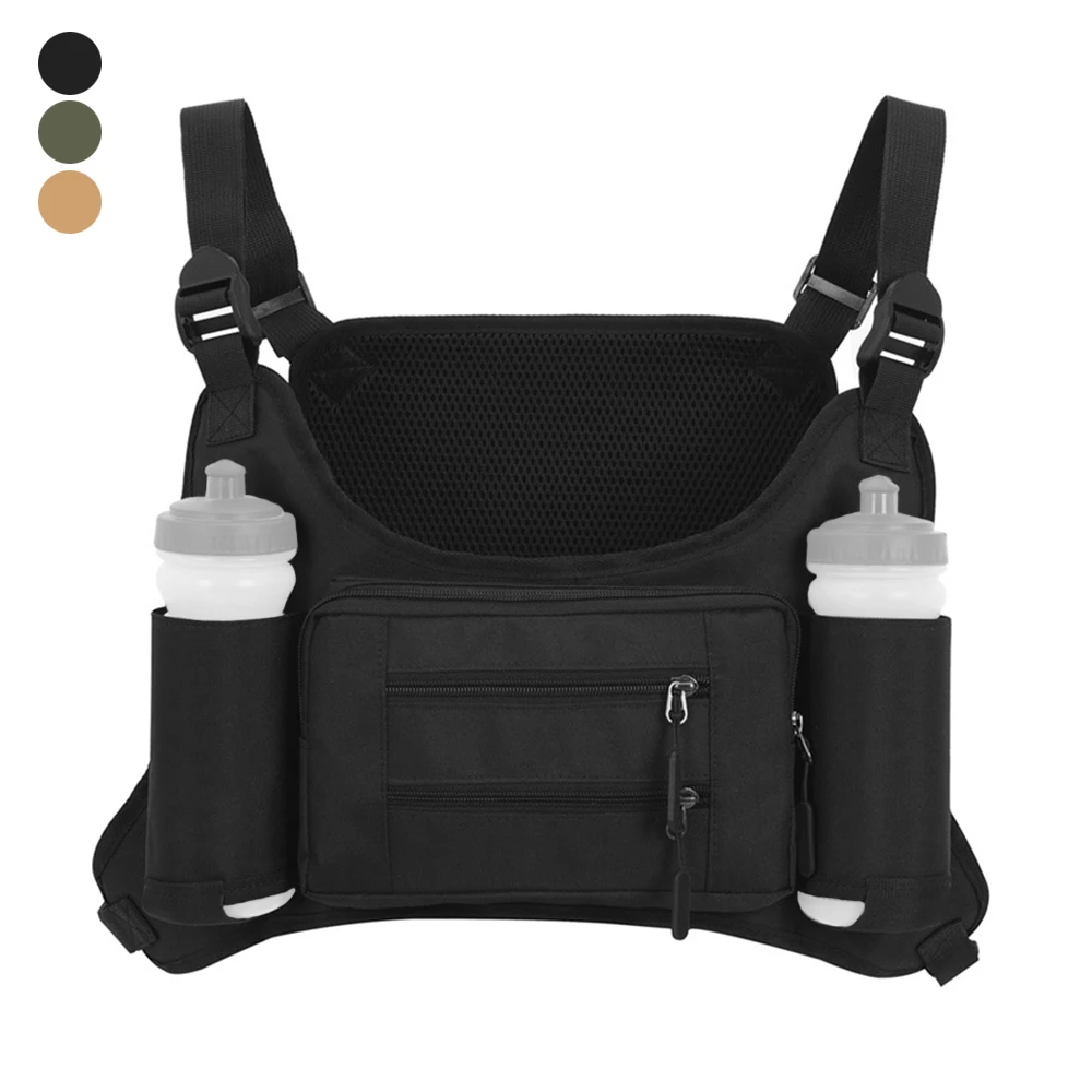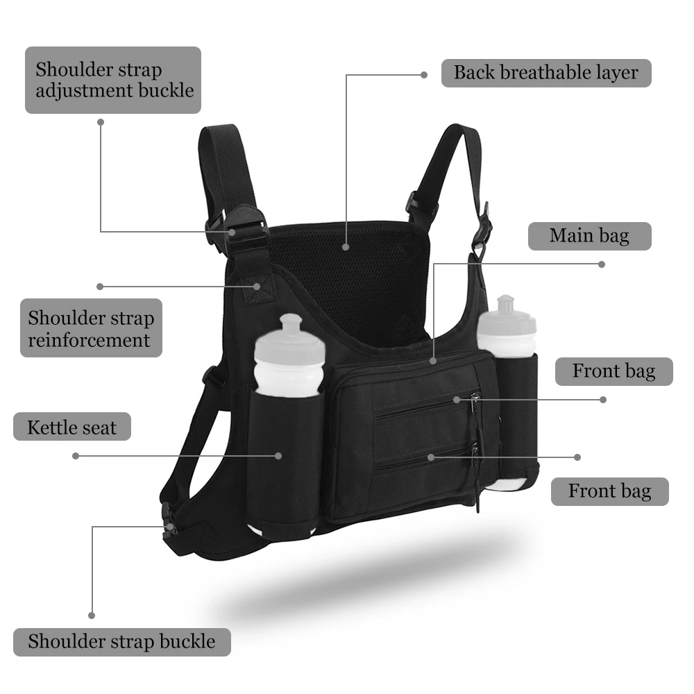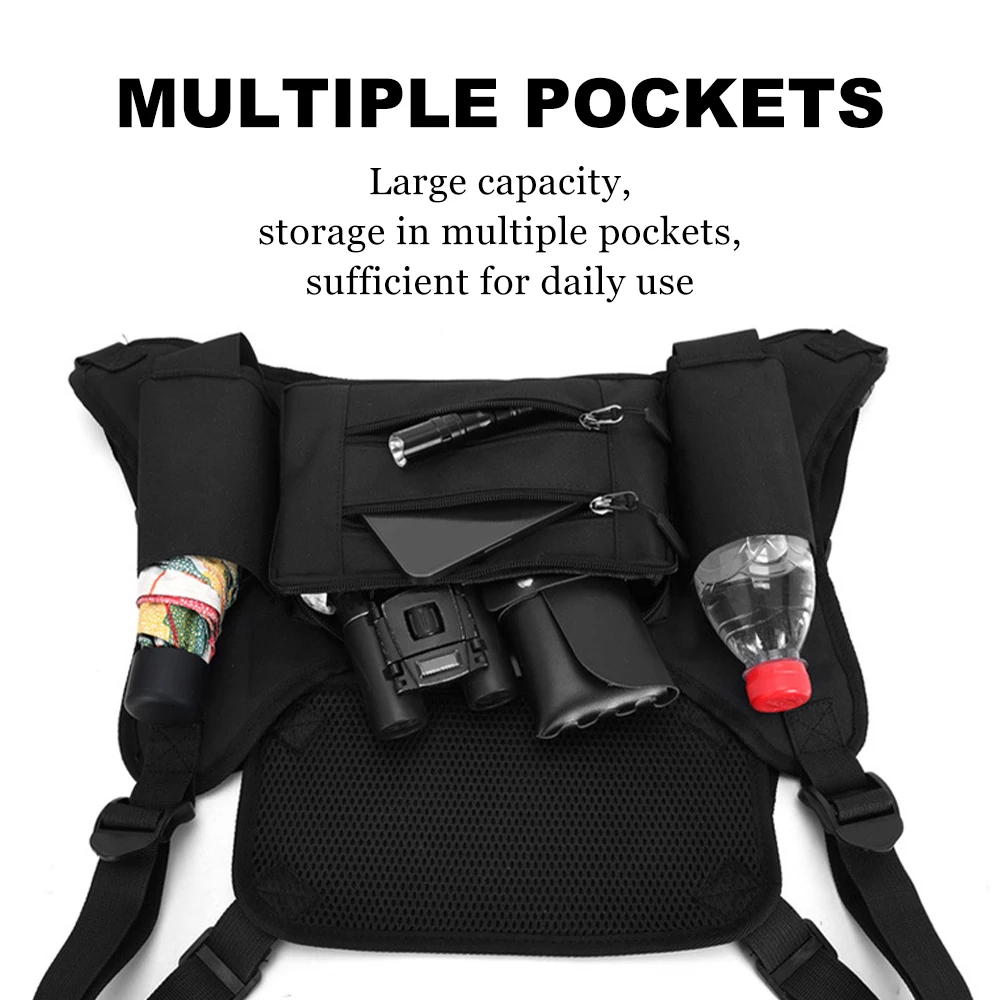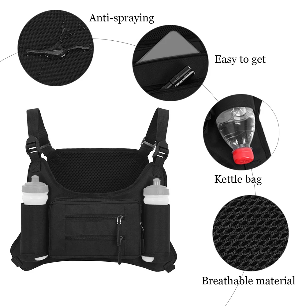 Bolsa de pecho para exteriores, bolsa de aparejo de pecho Unisex, bolsa de almacenamiento con múltiples bolsillos, bolsa de chaleco, paquete de pecho, bolsa para botella de agua, bolsa de chaleco táctico