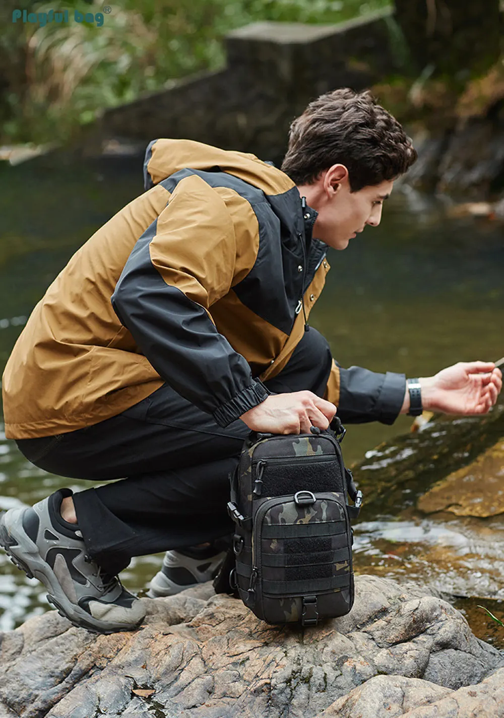 Bolsa de pecho para senderismo para hombre, mochila de camuflaje ligera para exteriores, paquete de camuflaje multifuncional, impermeable, AVA292