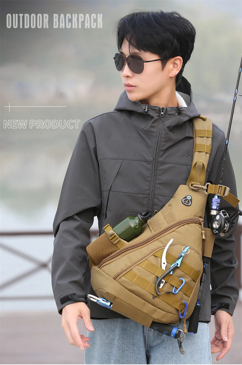 Bolsa de pecho táctica para deportes al aire libre, bolsa de señuelo de pesca, bolsa de viaje para hombres, escalada, Camping, bolso de hombro de camuflaje, bolsas portátiles ligeras
