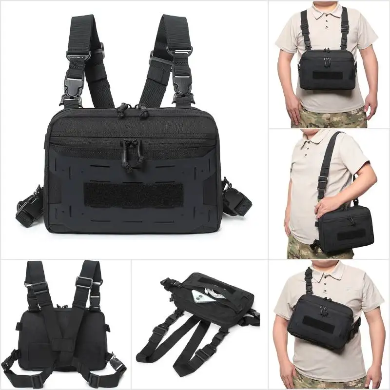 Bolsa de pecho táctica, Kit de herramientas para chaleco de carretera, chaleco de pesca multifuncional, bolsa funcional de ropa de trabajo Molle de expansión