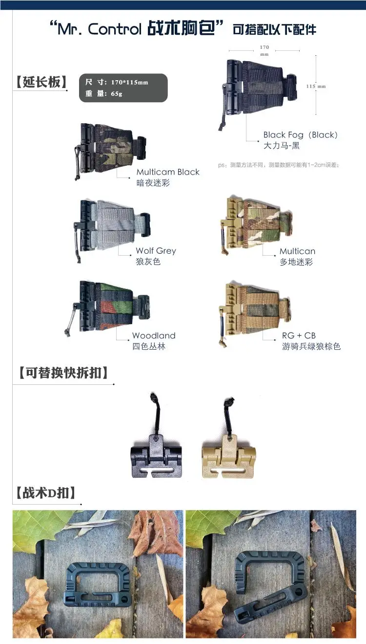 Se puede cambiar entre una bolsa de pecho, una cartera y una riñonera mediante una hebilla y los componentes correspondientes, y se puede combinar con una riñonera controlada para formar una riñonera, combinada con un sistema de transporte separado para formar una bolsa de pecho. o utilizado como bolso de pecho formando un enlace directo a la correa de una mochila.El exterior está equipado con un contenedor exprés y un pequeño contenedor con cremallera.El interior está equipado con un divisor elástico y una chapa mágica para ampliar el divisor interno de diferentes funciones, como almacenamiento de redes, almacenamiento médico o almacenamiento de revistas, adecuado para caminatas al aire libre, salidas tácticas y desplazamientos urbanos;