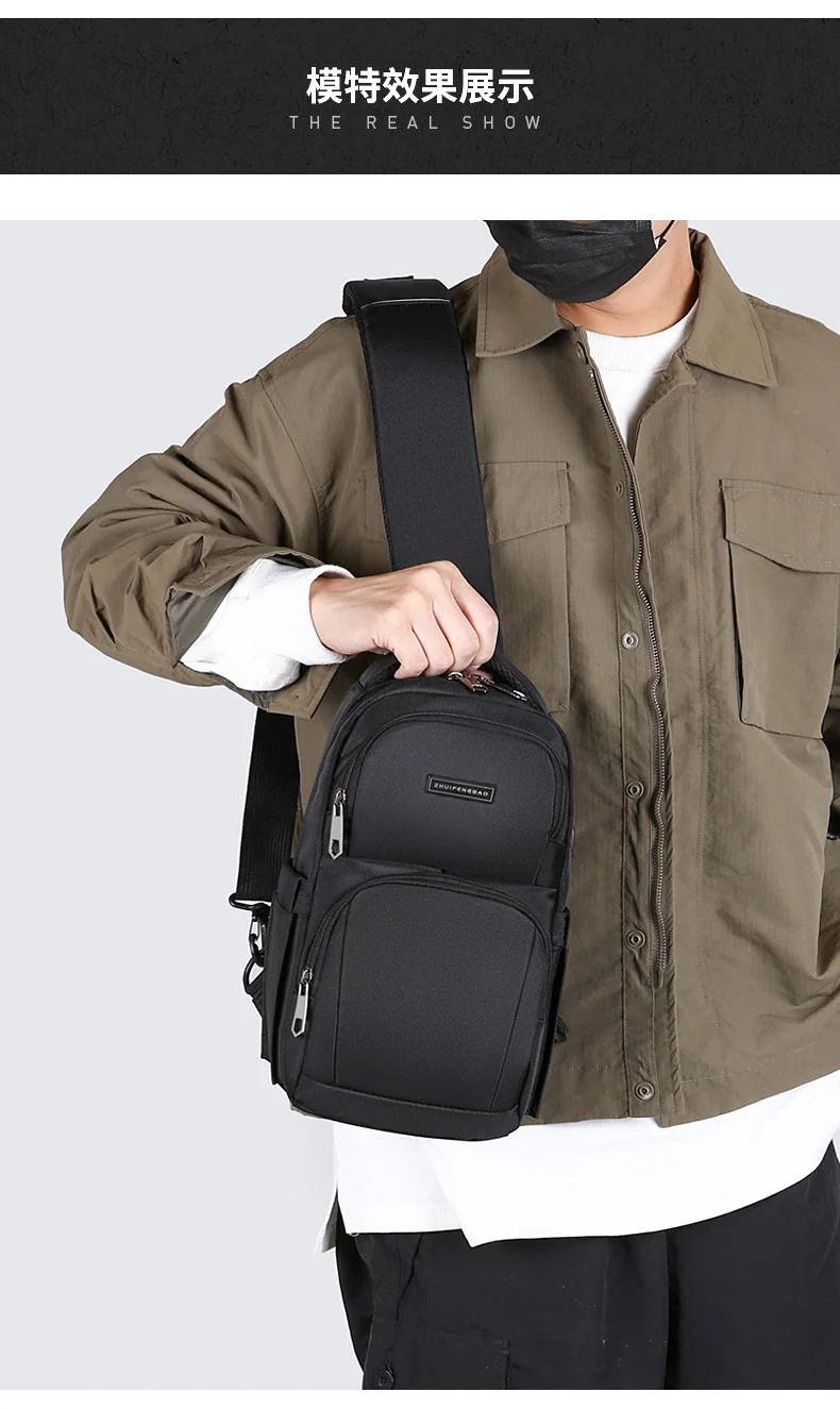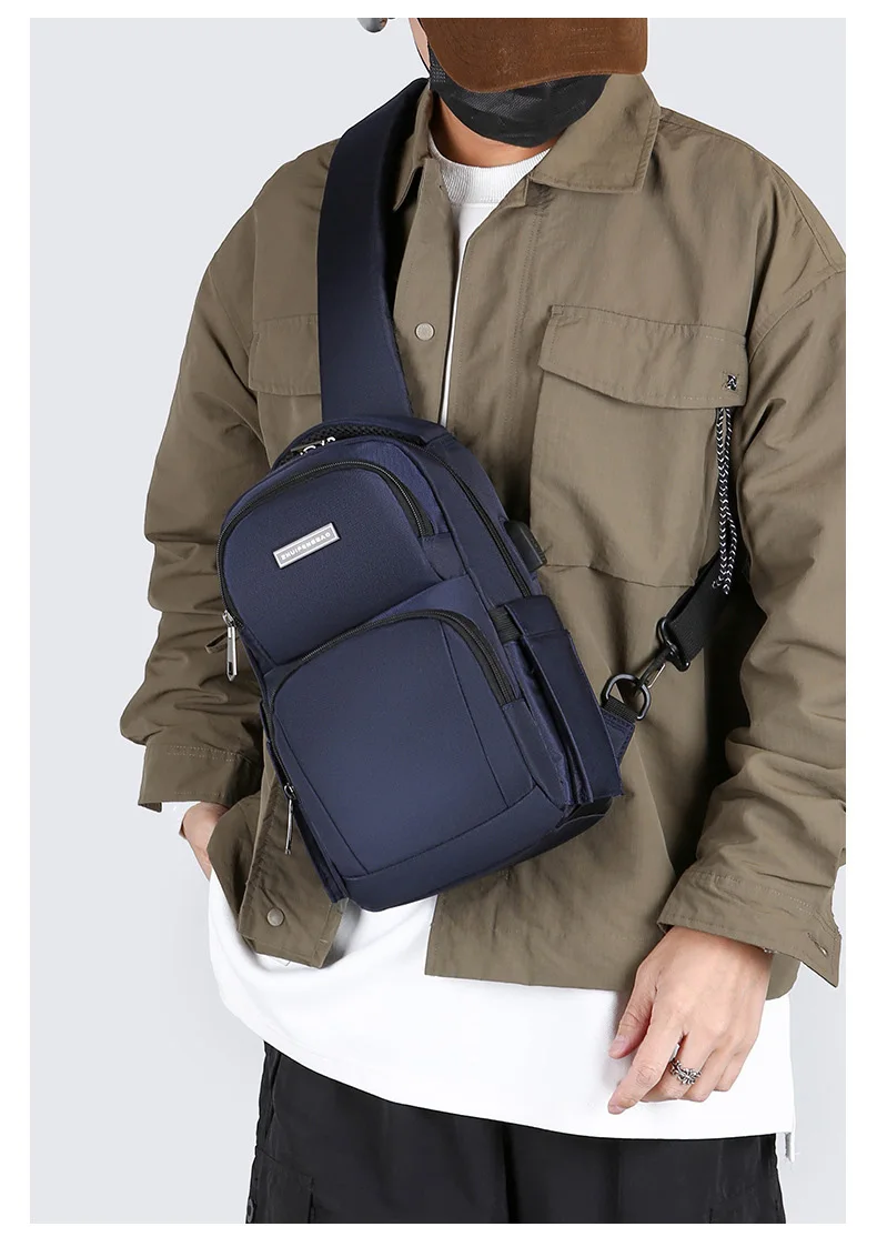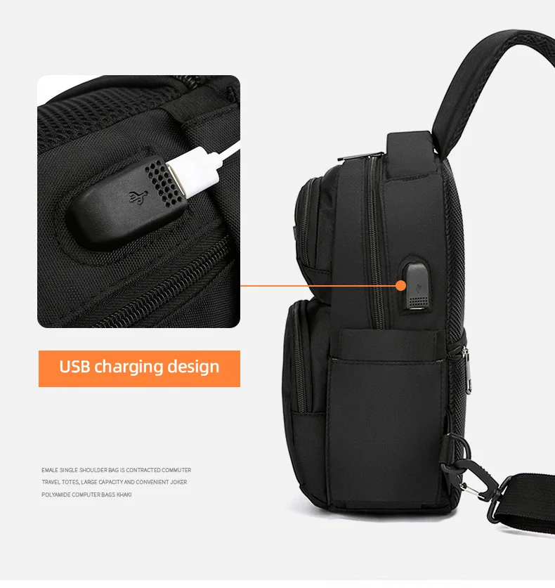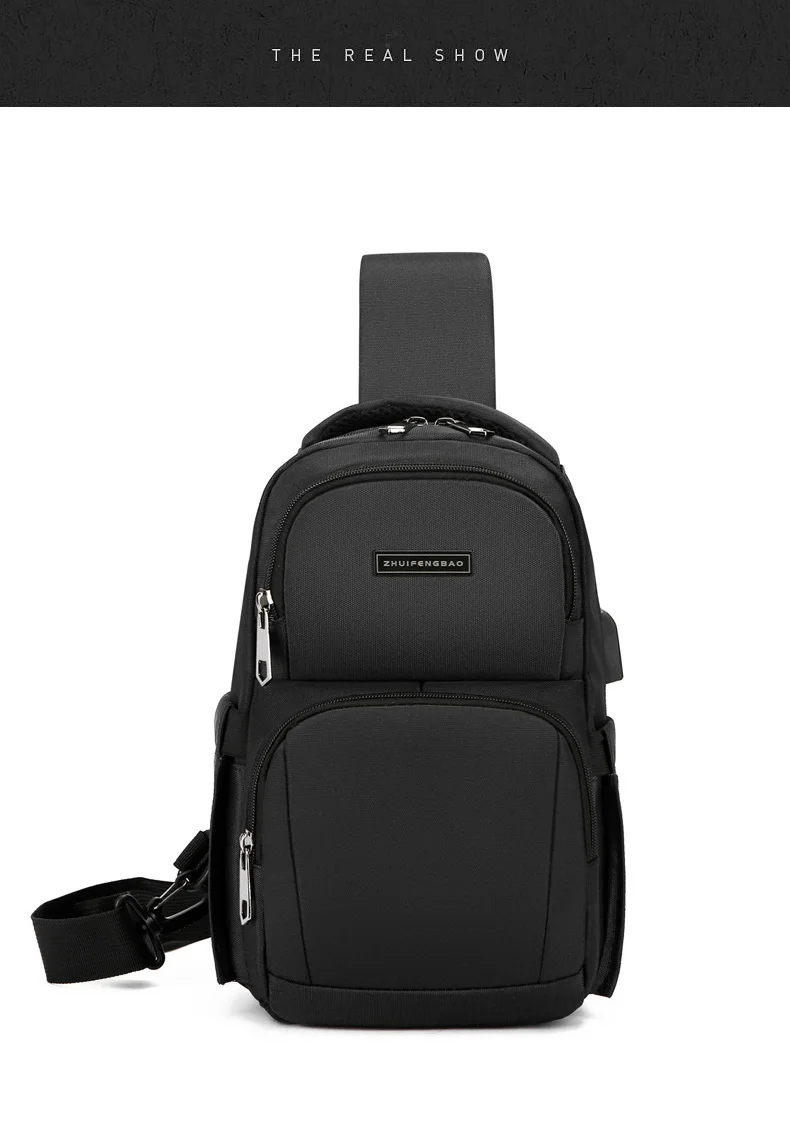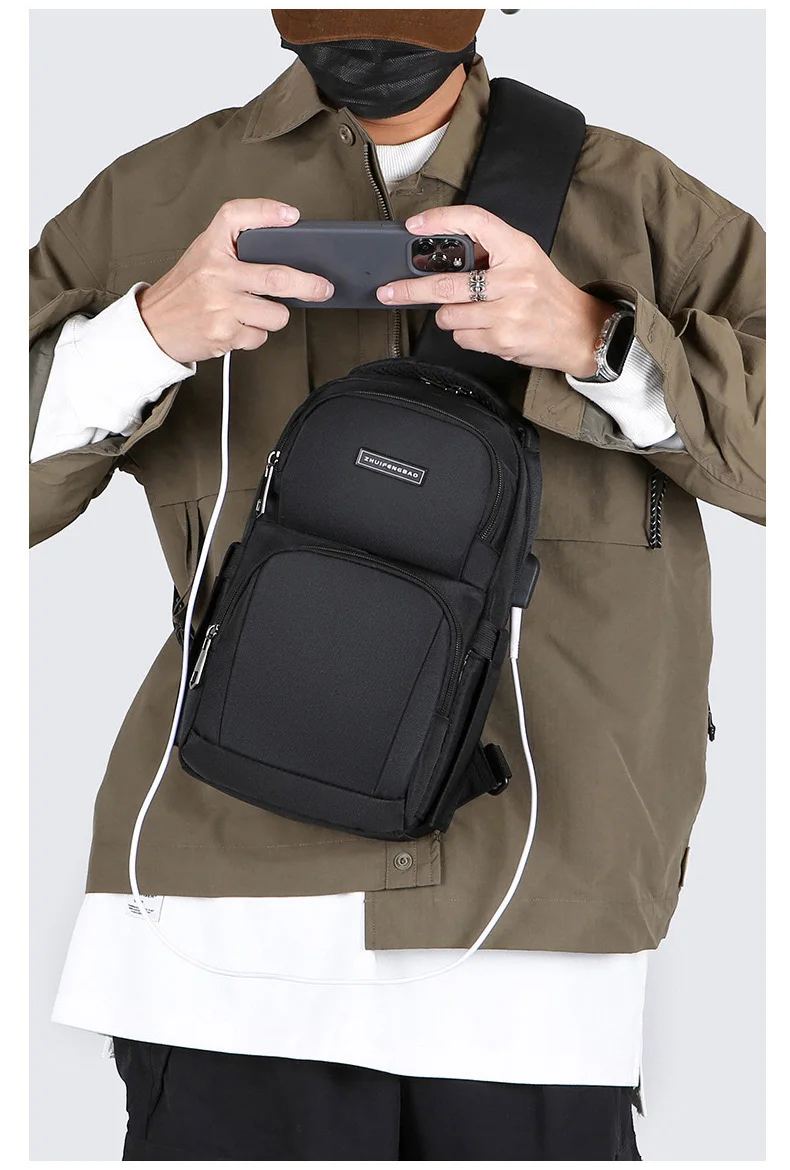 Bolso de pecho USB para hombre, mochila para hombre, bolso cruzado Diagonal de viaje, cien bolsos de hombro