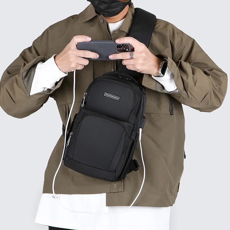 Bolso de pecho USB para hombre, mochila para hombre, bolso cruzado Diagonal de viaje, cien bolsos de hombro