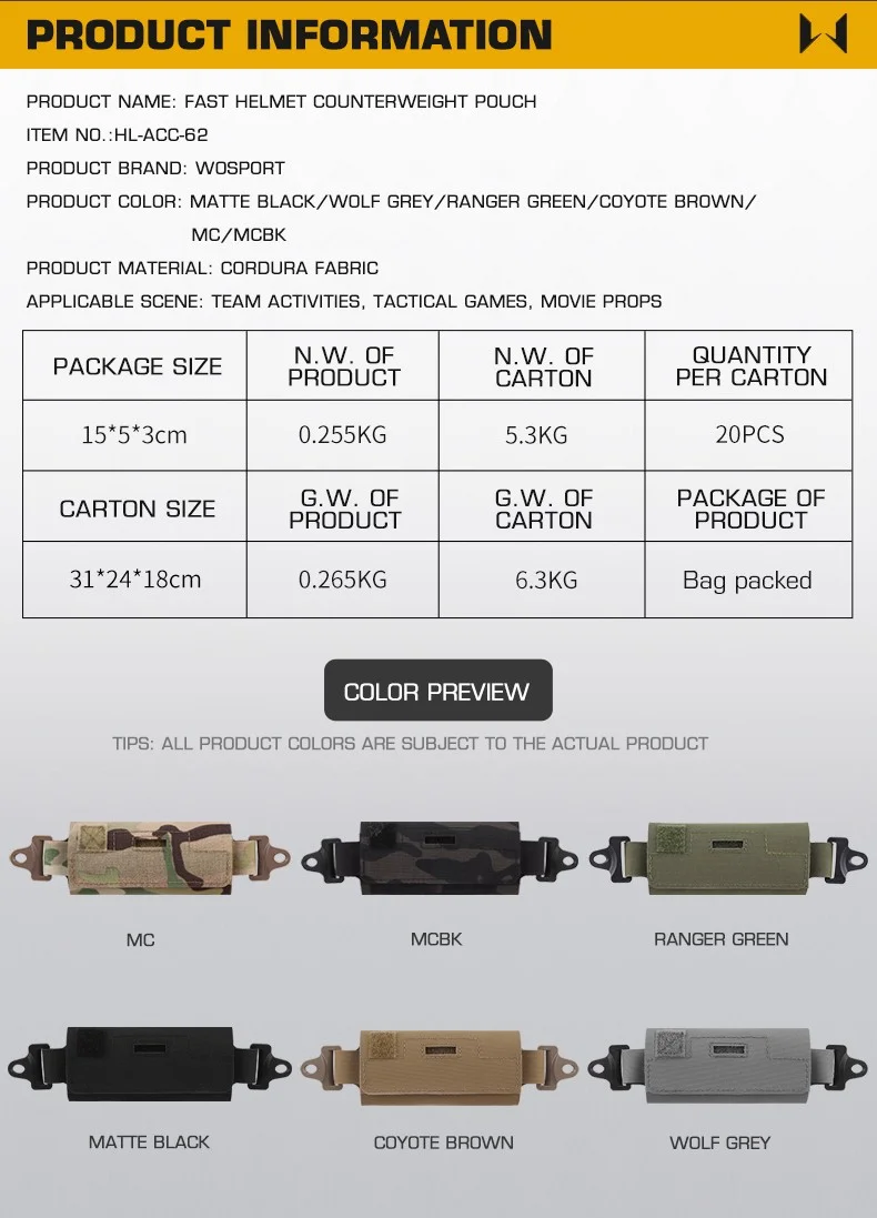 Bolsa de peso de contrapeso para casco táctico, bolsa de contrapeso NVG para OPS-Core Fast BJ PJ MH Airsoft, accesorios para cascos rápidos