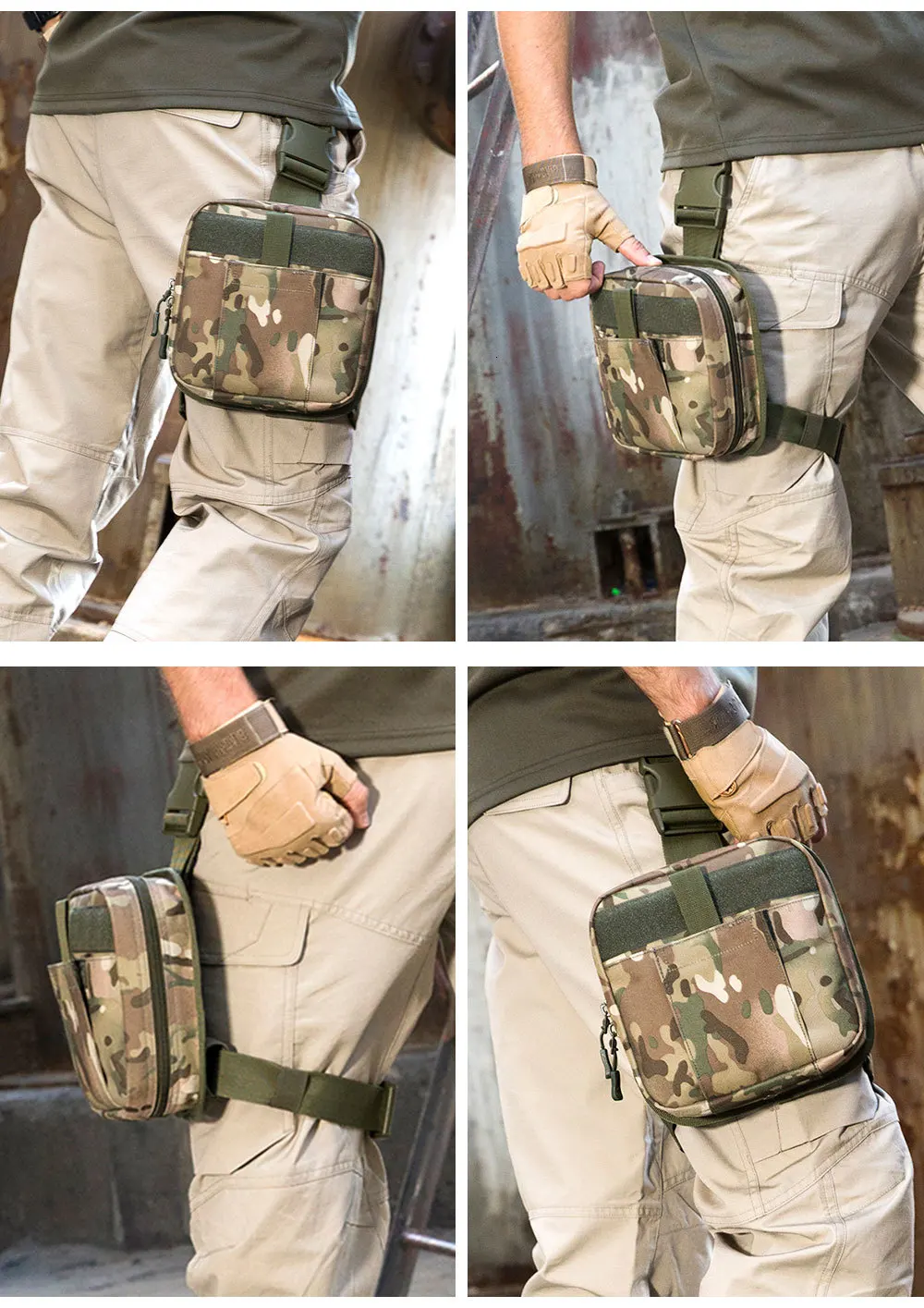 Bolsa para piernas al aire libre, bolsa para oeste, sistema táctico Molle impermeable, conjunto de primeros auxilios, bolsa médica para caza, senderismo, senderismo, bolsa para piernas