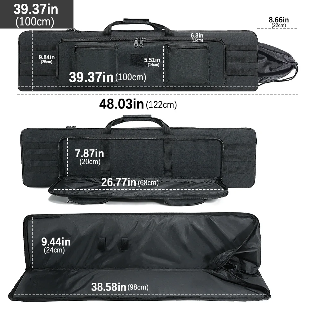 Muy buena funda para rifle, mi rifle cabe perfectamente con mi mira grande y el bipod sin necesidad de desmontarlos.