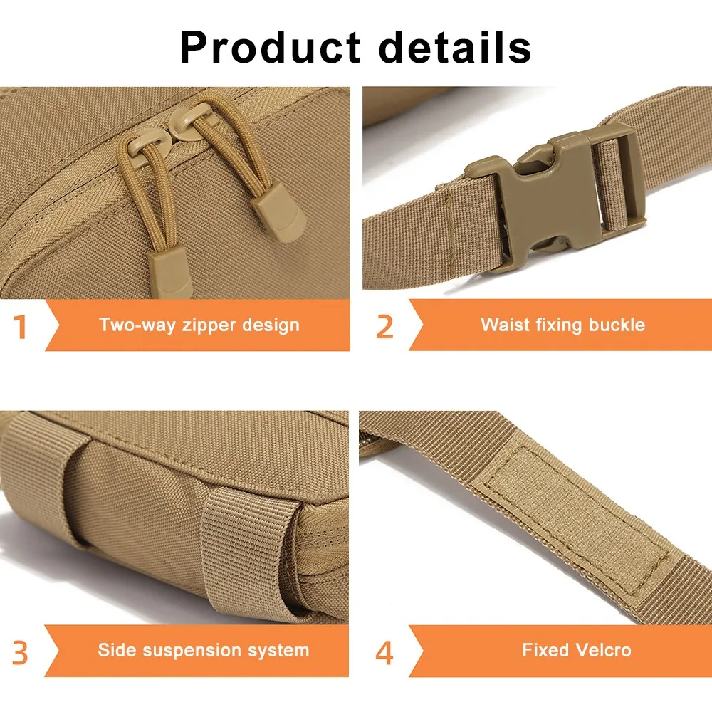 1. 【Calidad y uso cómodo】 Hecho de nailon 1000D de calidad, resistente, resistente al desgarro, resistente al agua y al polvo para uso diario o al aire libre.La riñonera de transporte concebida utiliza un cierre de doble cremallera que se puede abrir rápidamente con una mano, una hebilla de cinturón de plástico reforzado y una cremallera reforzada para que la cremallera sea duradera.