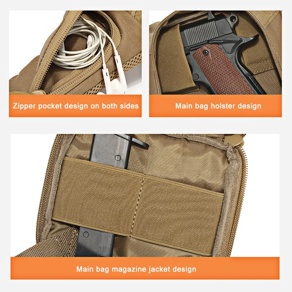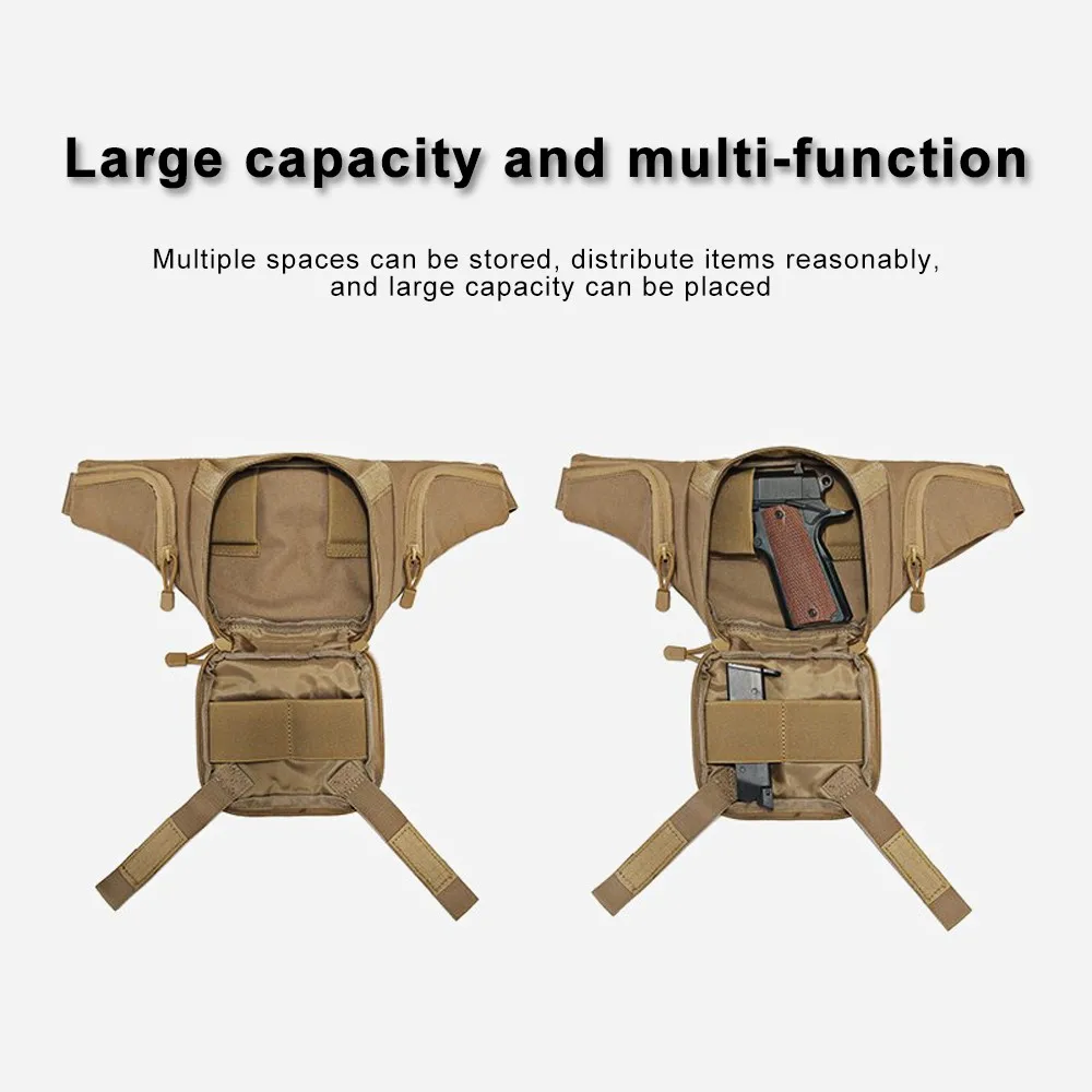 4. 【Práctico y versátil】 Cuenta con un bolsillo principal con cremallera que incluye dos correas elásticas para sujetar de forma segura, 2 correas elásticas en el otro lado para guardar cargadores de pistola, cuchillo táctico, linterna y otras herramientas.Dos bolsillos a cada lado para herramientas EDC. Dos correas en la parte inferior pueden asegurar artículos de emergencia.
