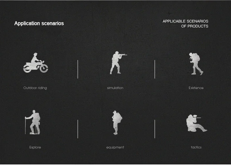 ● Aplicable: caza al aire libre, deportes tácticos de escalada y senderismo.