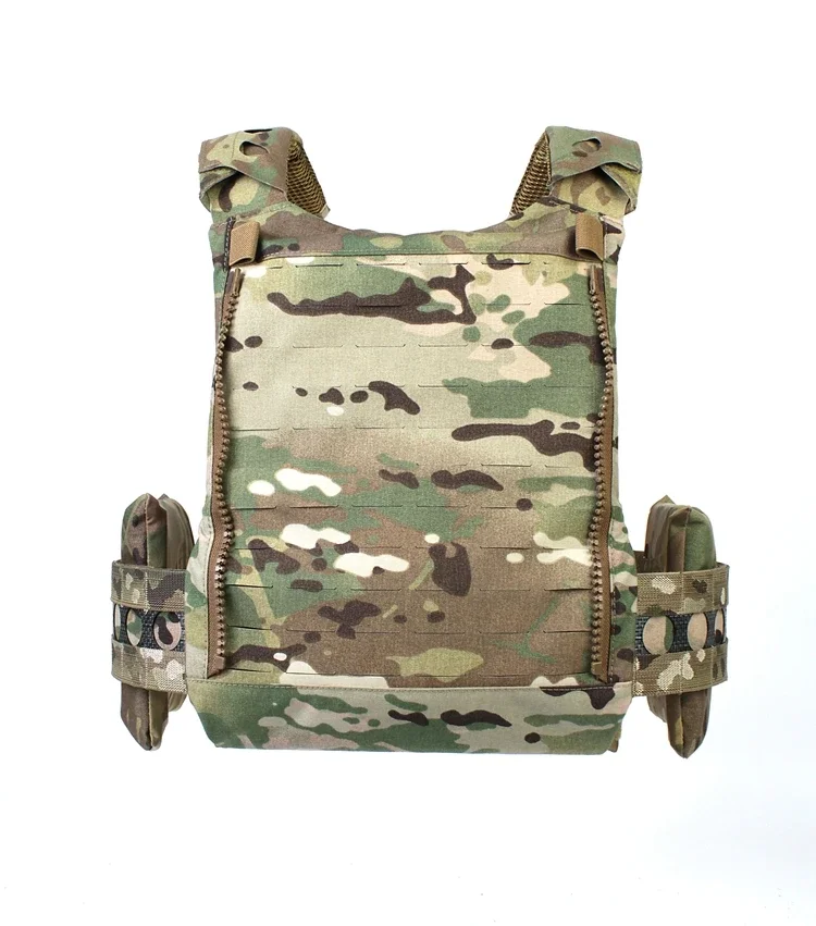 Se puede fijar al soporte de la placa del chaleco mediante velcro trasero.