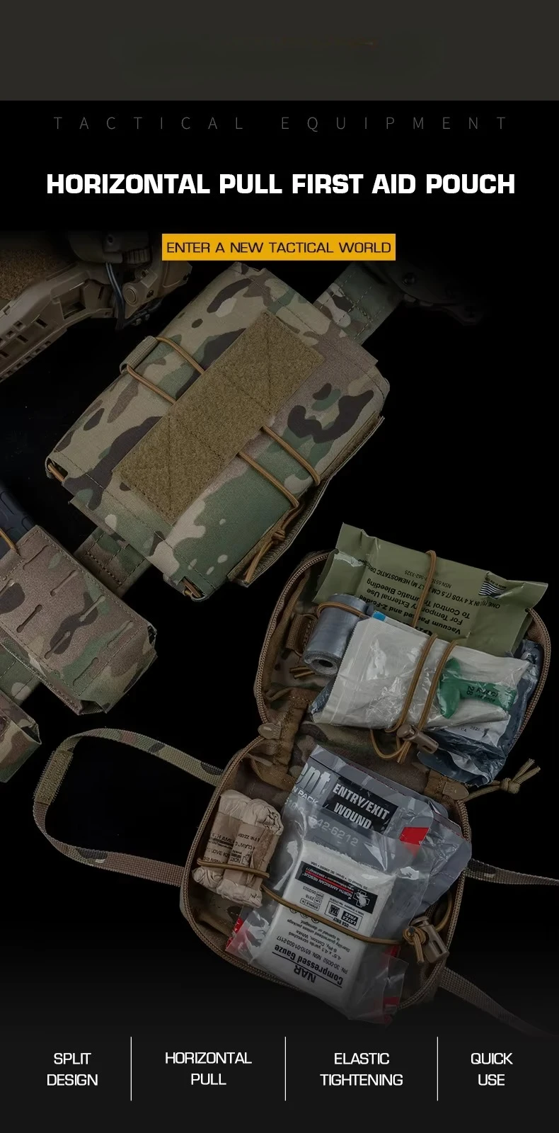 Bolsa de primeros auxilios con diseño dividido, bolsa médica MOLLE para cinturón, chaleco CS, accesorios de caza