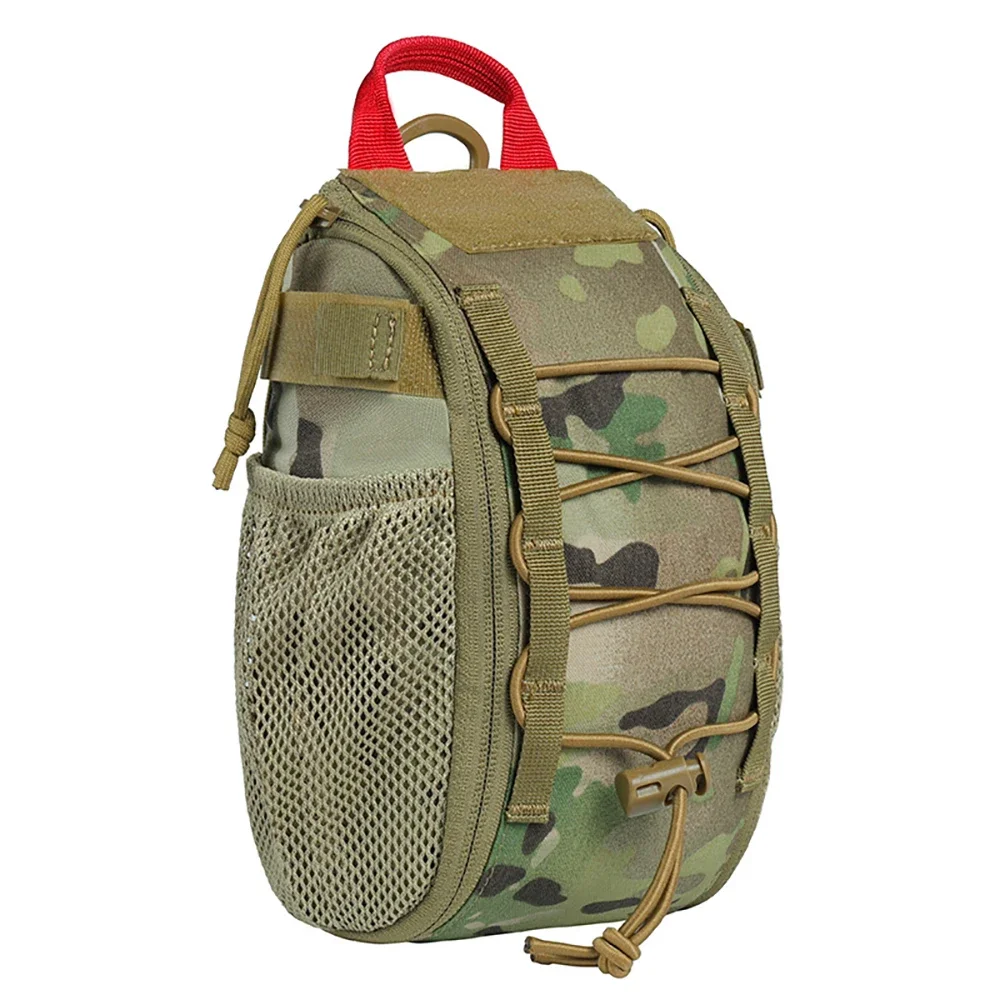 L Bolsillos laterales de malla para sujetar las fundas de trauma con una tira de sujeción de velcro