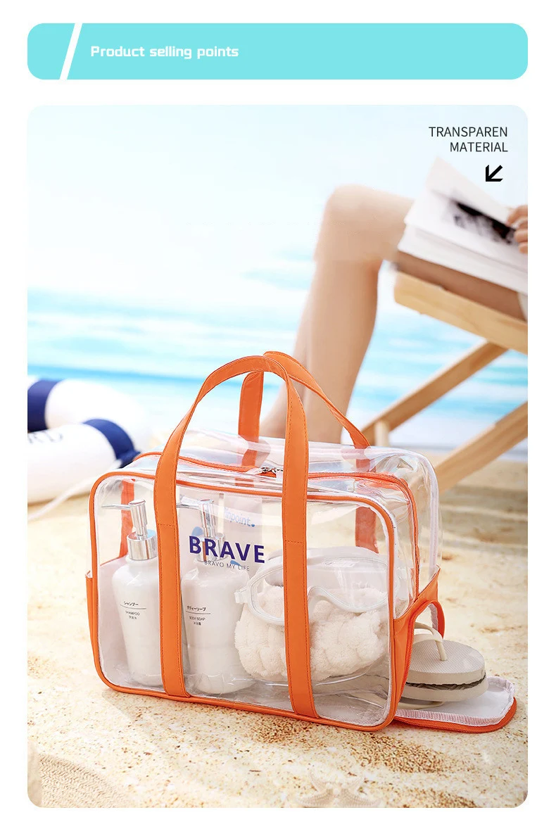 Bolsa de verano de PVC para natación y playa, impermeable, transparente, para construcción, bolso de comunión, paquete grande de viaje de equipaje para viajes al aire libre