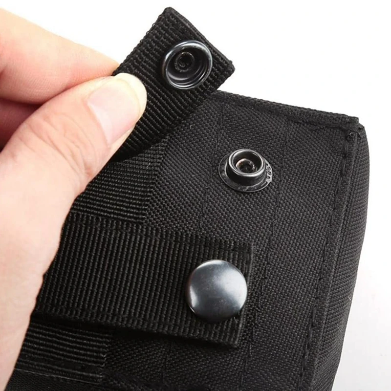 Dos cinturones con botones a presión en la parte posterior, adecuados para cinturones tácticos y cualquier artículo del sistema Molle. Puede sujetarlo a un chaleco táctico, mochila, cinturón o ropa.